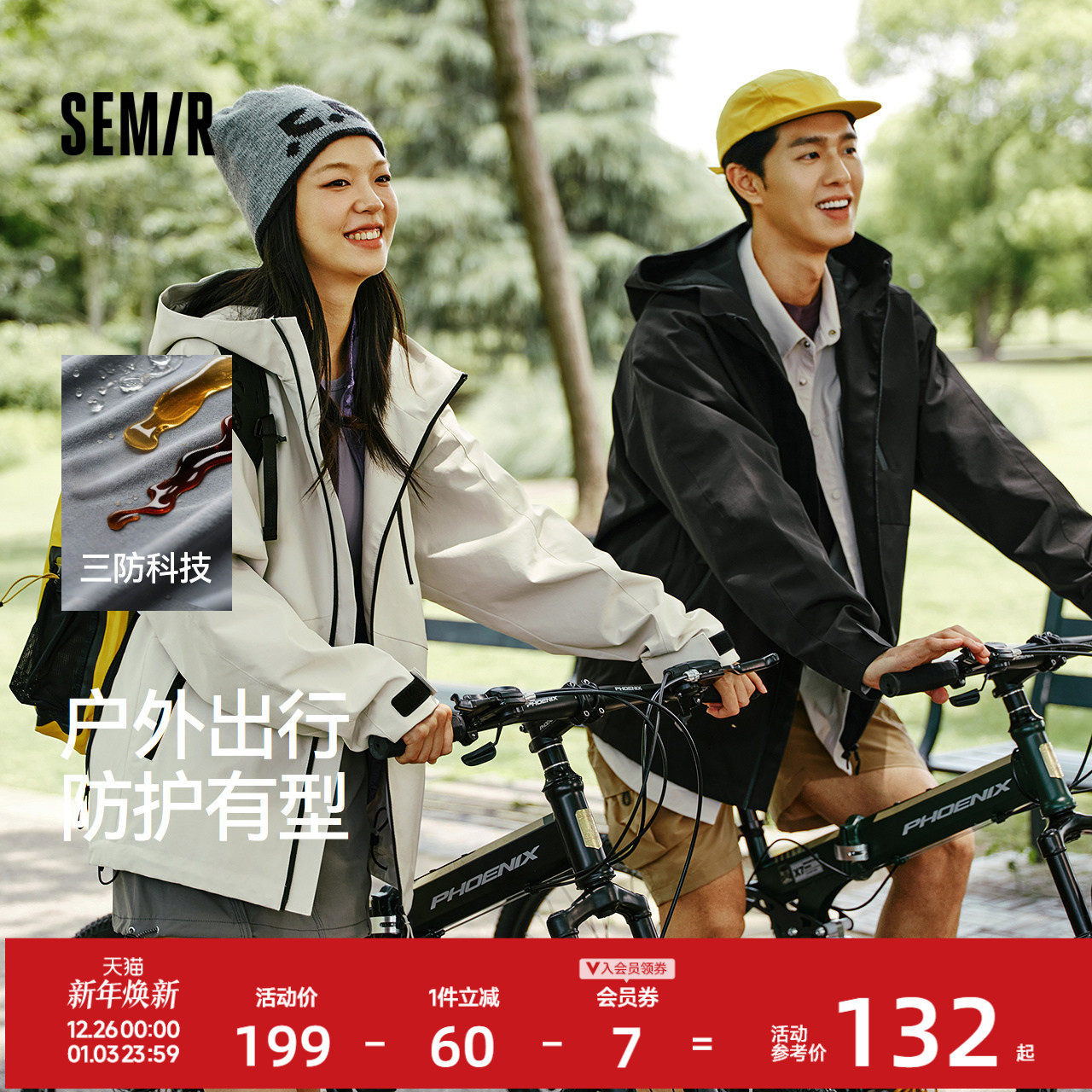 森马户外三防外套男2025秋款连帽上衣百搭徒步露营夹克男女同款