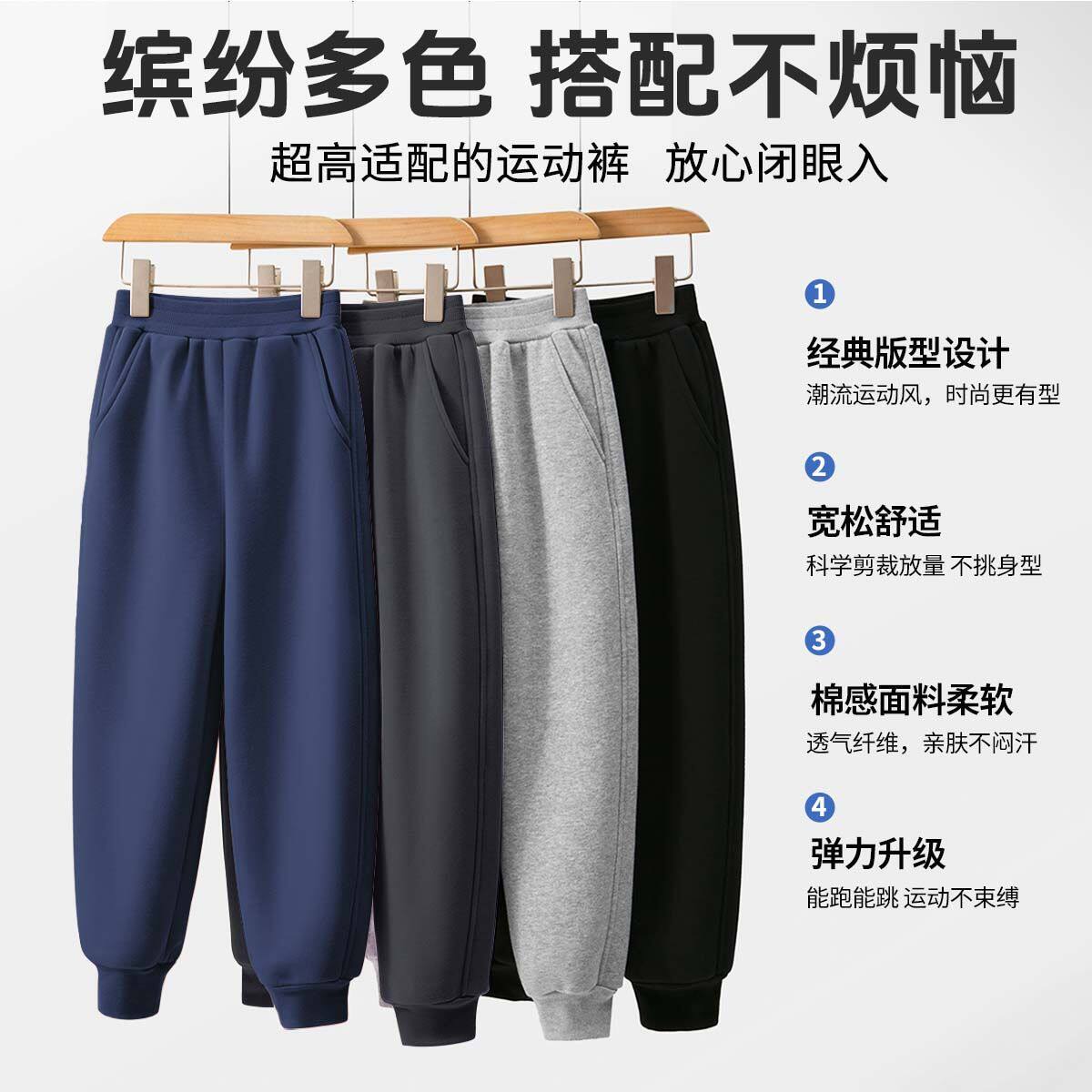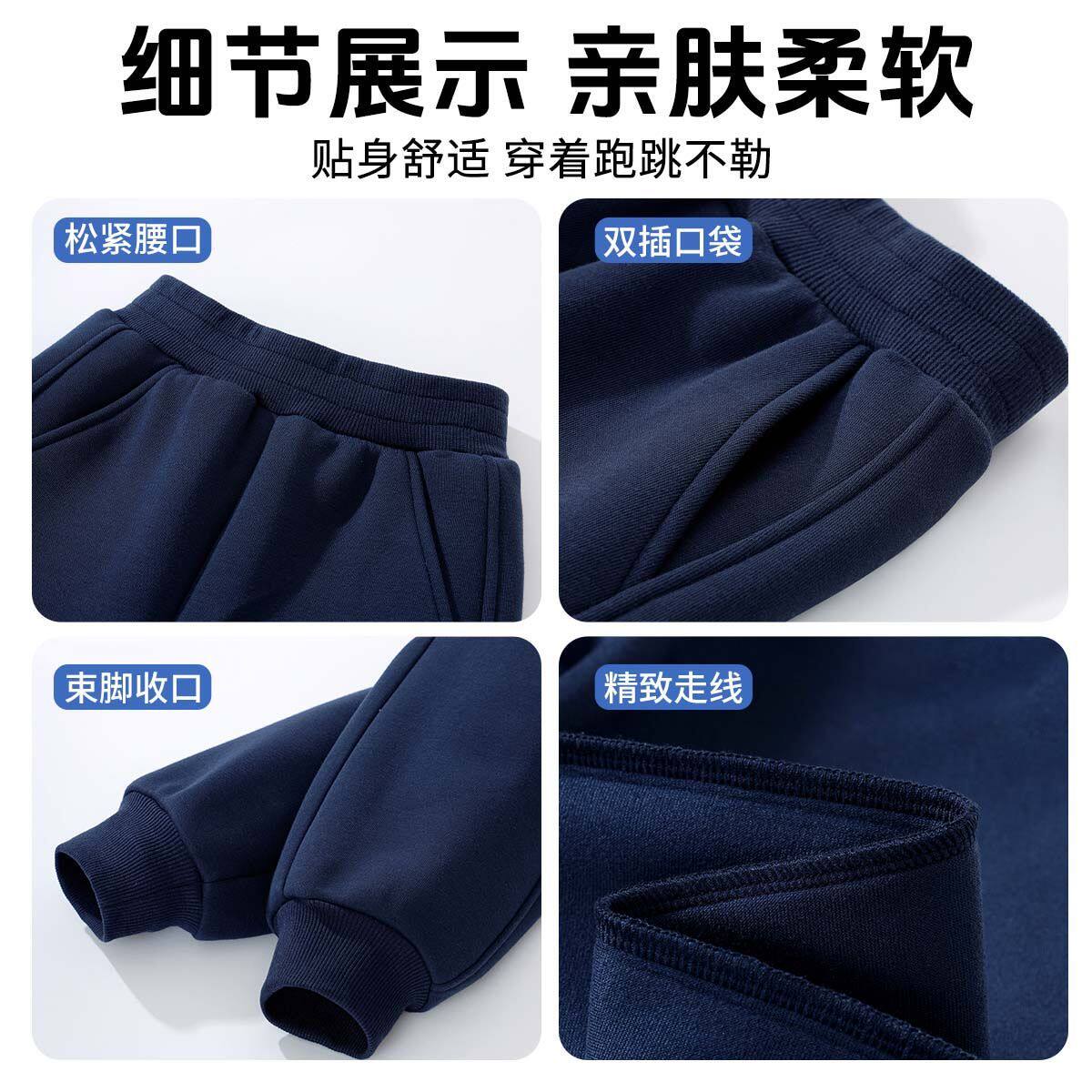 罗蒙儿童卡其色校园服裤子男童松紧西裤小学生加绒女童藏青运动裤