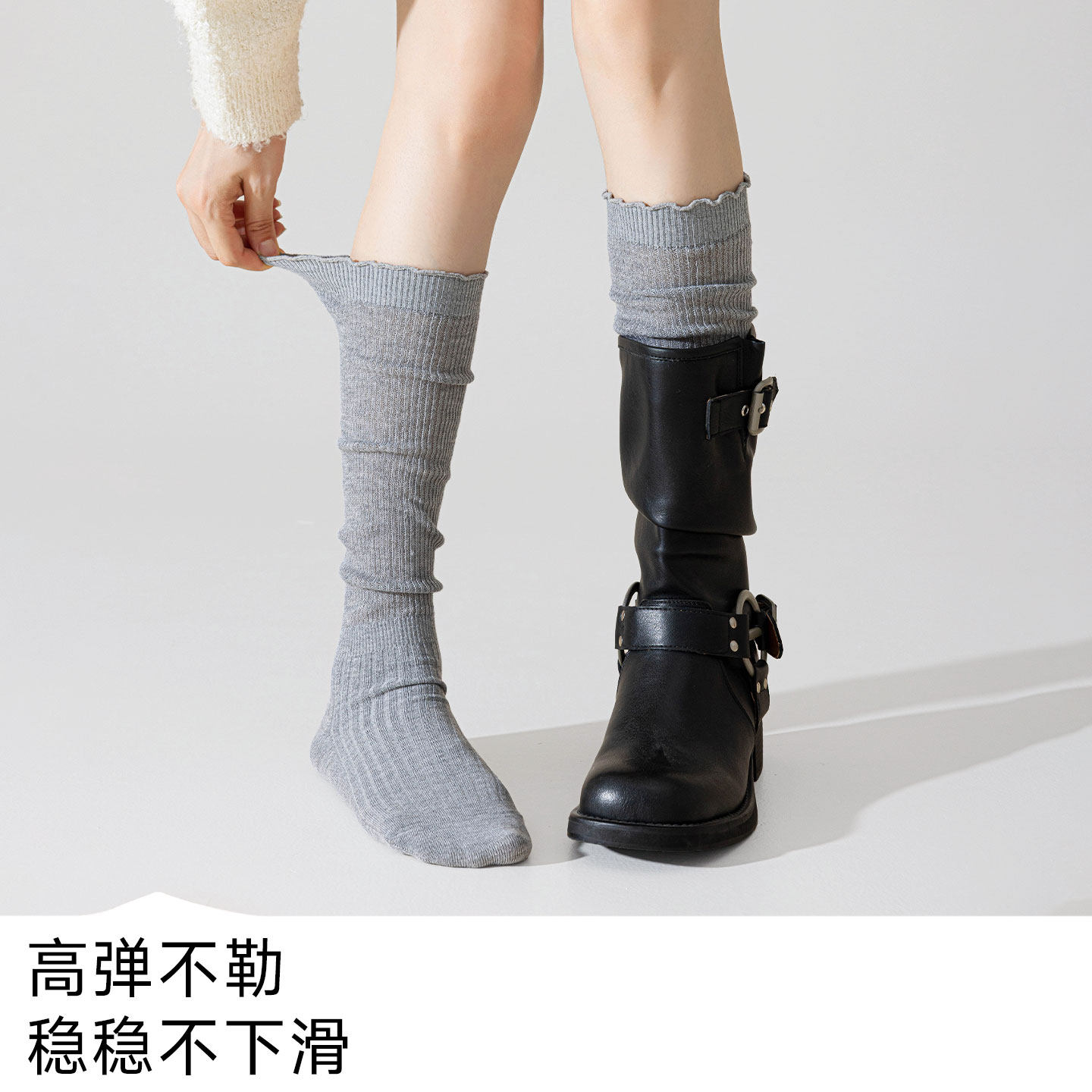 高品质欧货韩国老板娘袜子纯色薄款堆堆袜百搭及膝小腿袜黑灰女袜