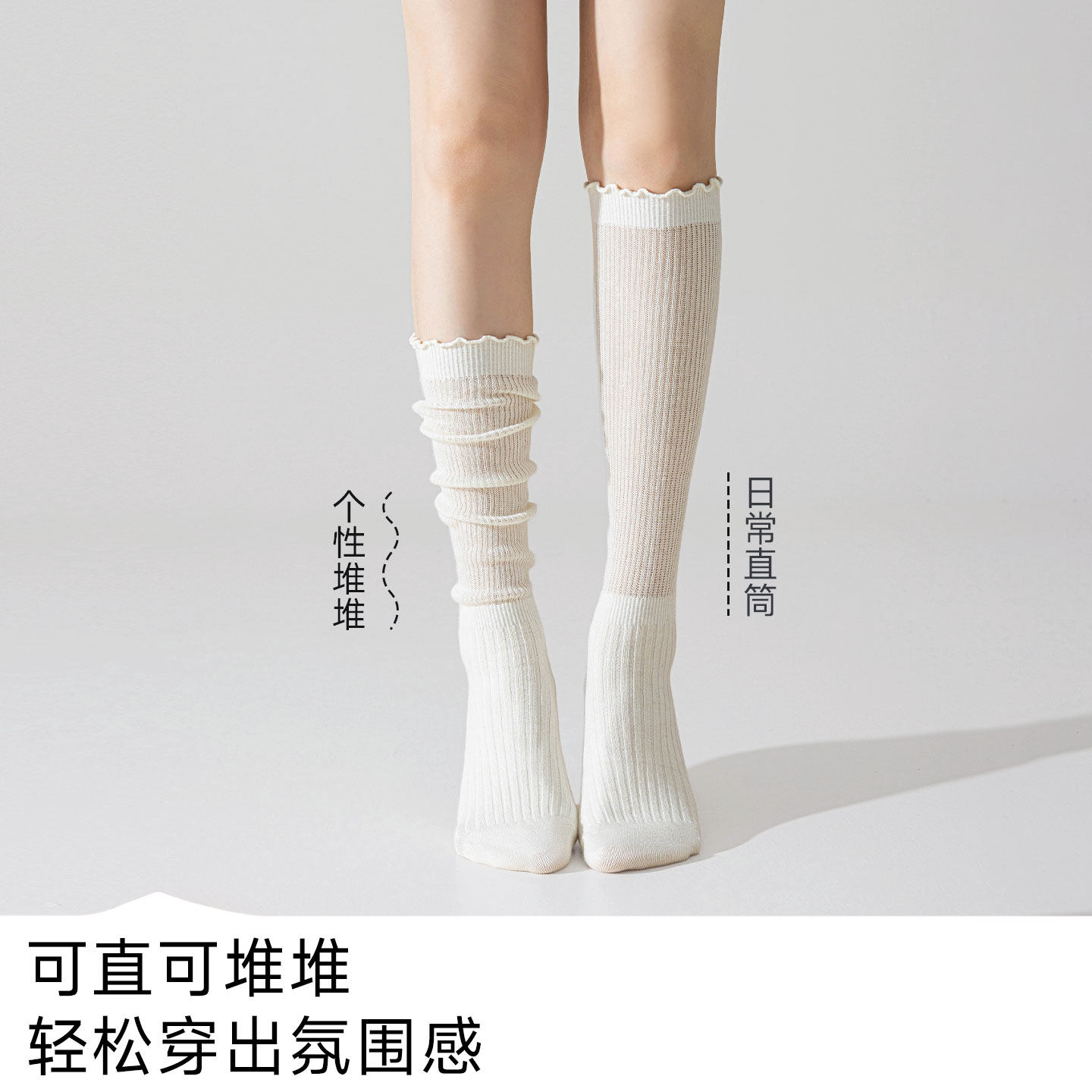 长筒袜配靴子袜堆堆袜女款长筒靴袜小腿袜jk白色春夏薄款木耳花边