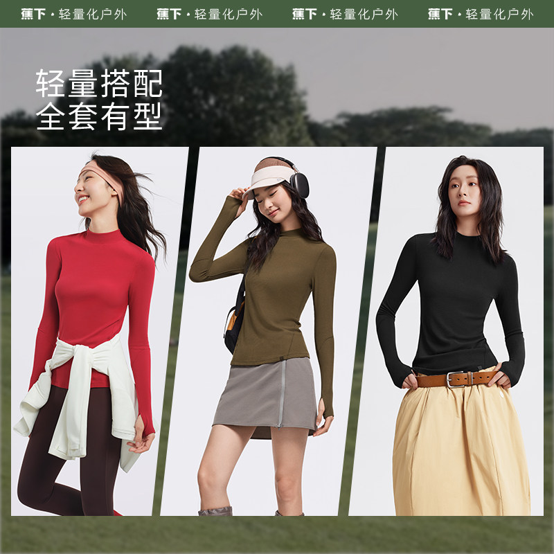 蕉下摇粒绒打底衫女秋季新款半高领保暖加绒亲肤内搭上衣肌底衣