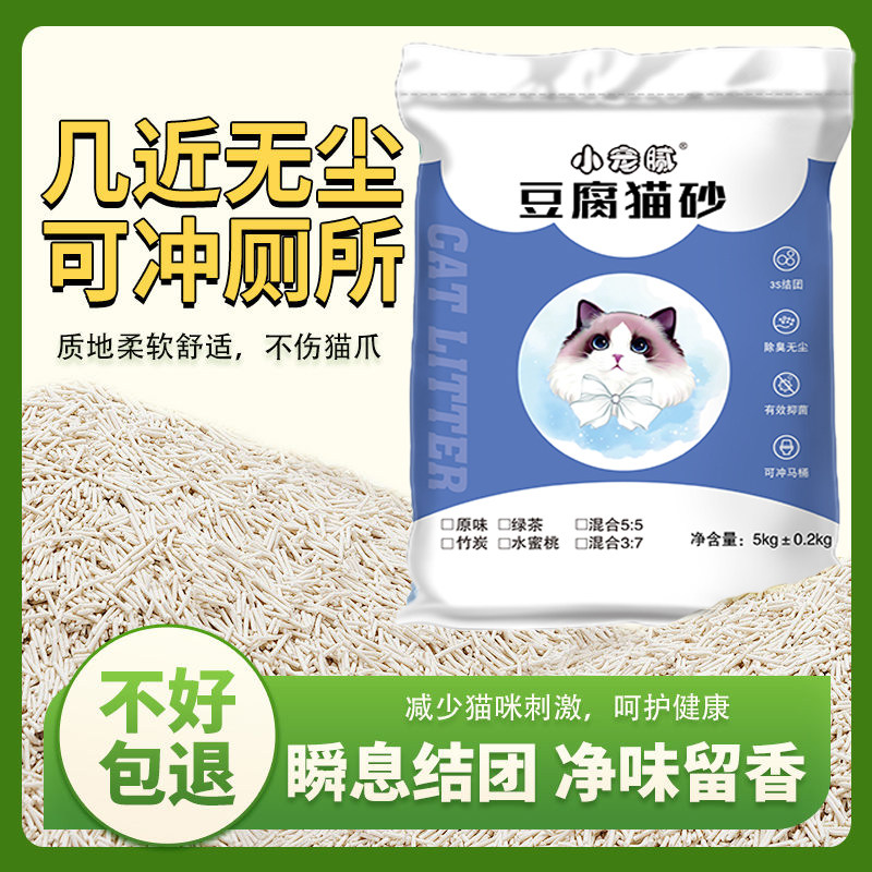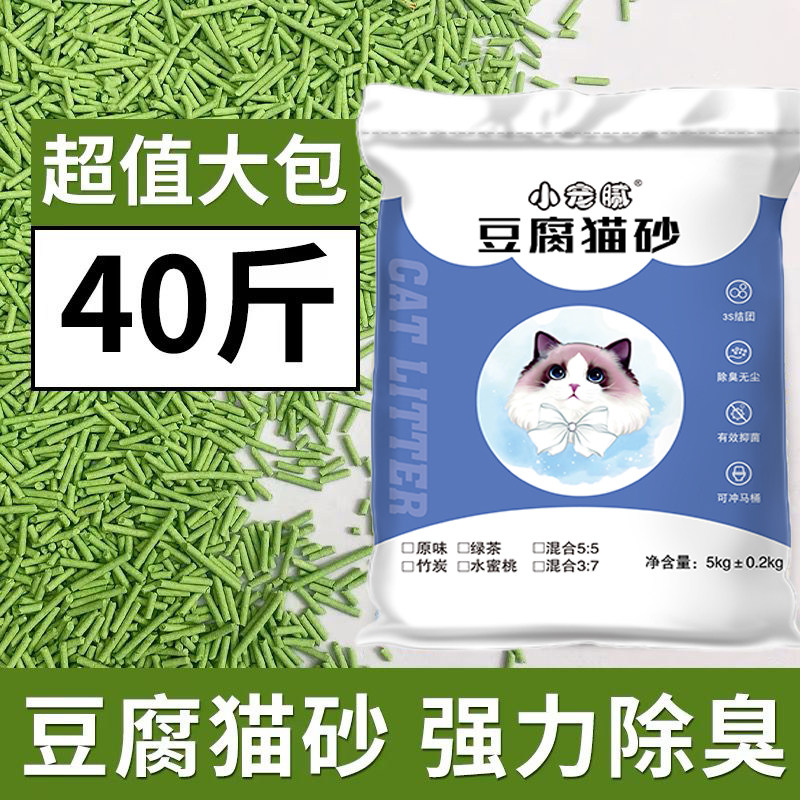 小宠腻豆腐猫砂除臭无尘绿茶猫咪用品猫沙膨润土玉米砂约20公斤
