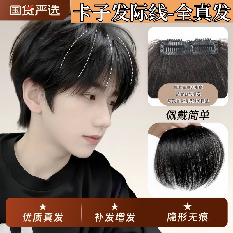 男士真发垫发片假发片增发量蓬松一小片式发际线贴头顶补发假刘海