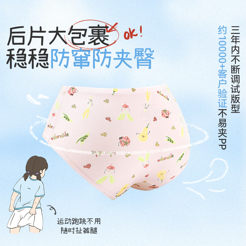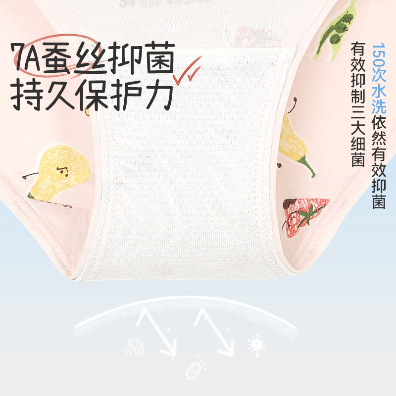 久岁伴儿童内裤女童双层蚕丝抑菌透气春秋薄款可爱中大童三角短裤