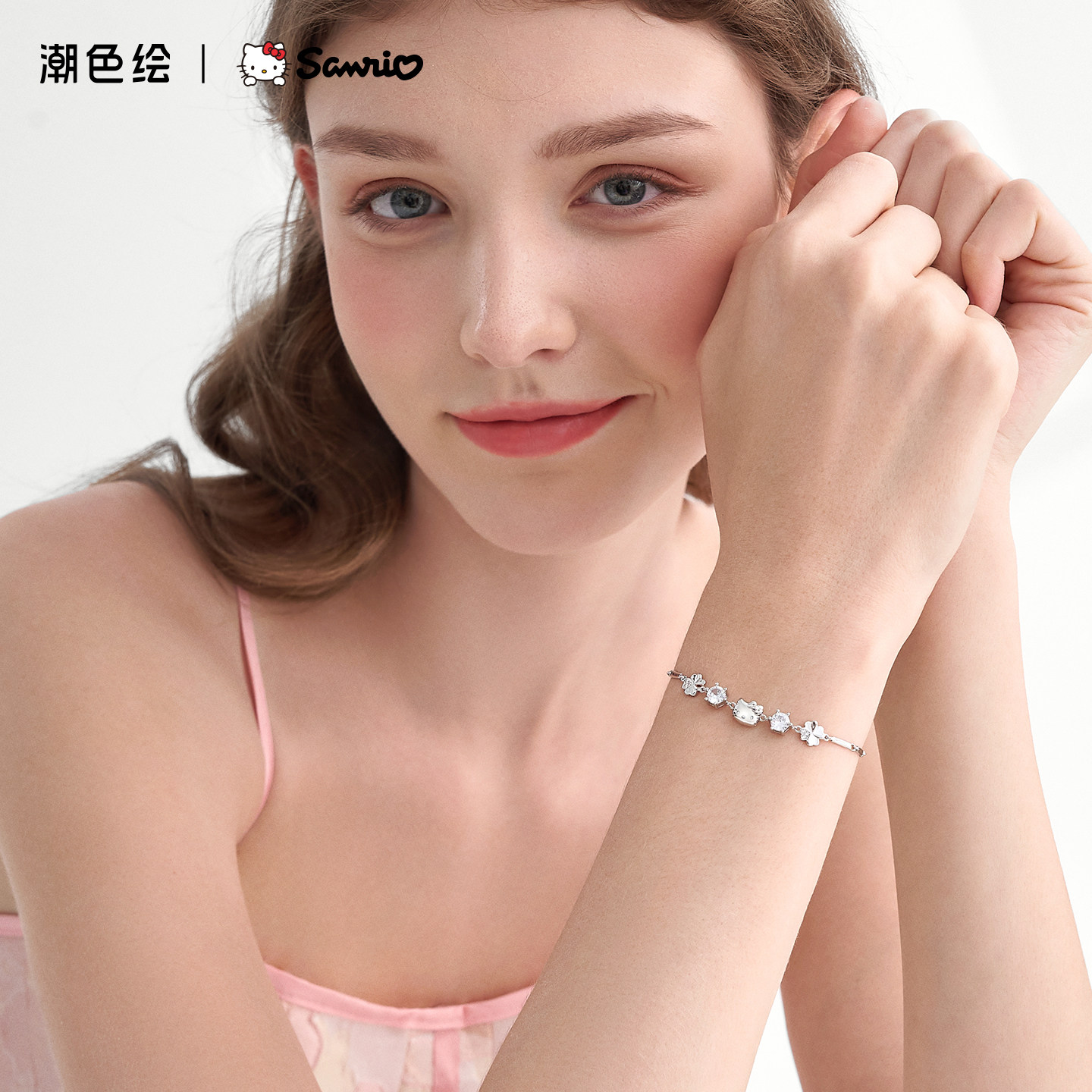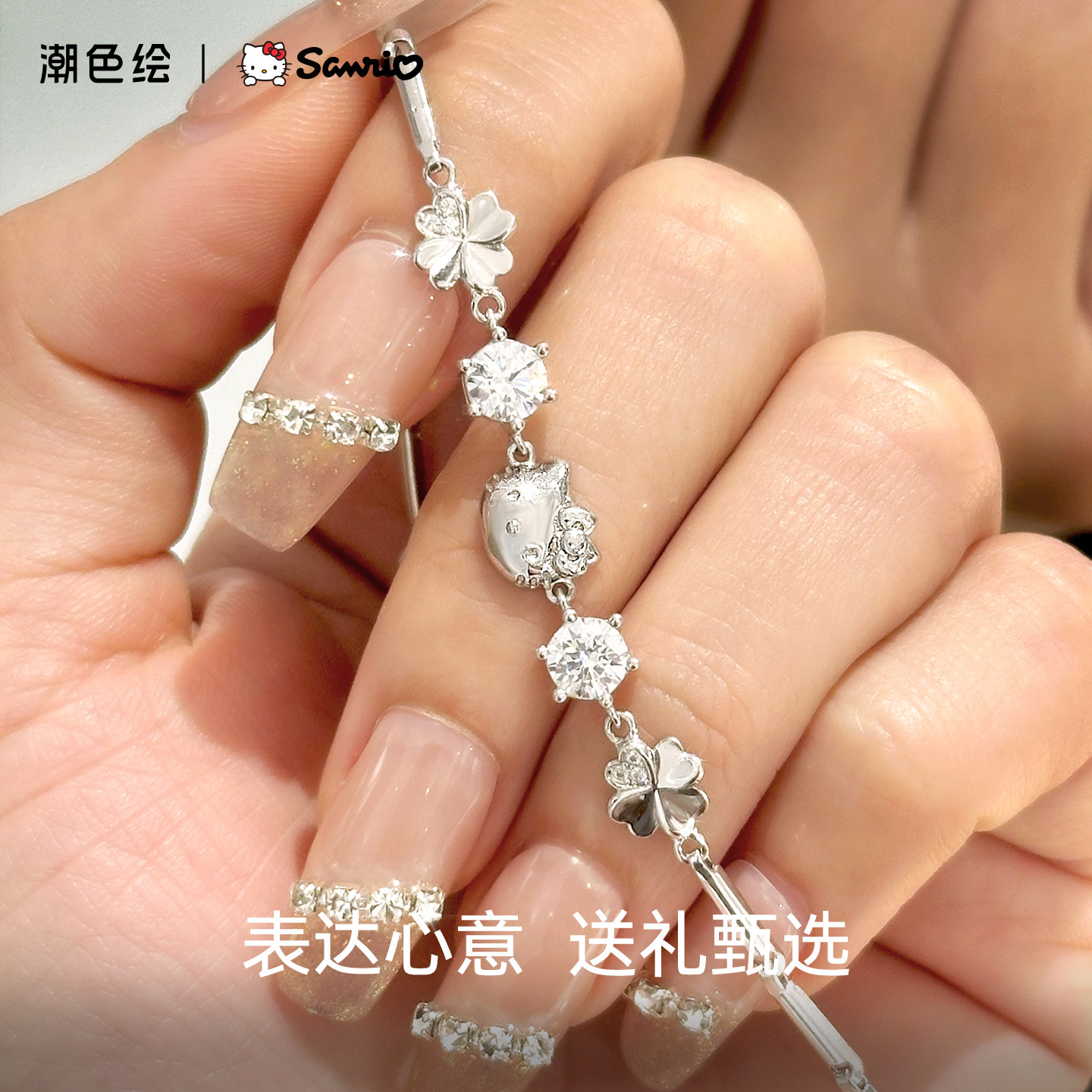 潮色绘三丽鸥Hellokitty四叶草手链女生925纯银饰生日圣诞节礼物