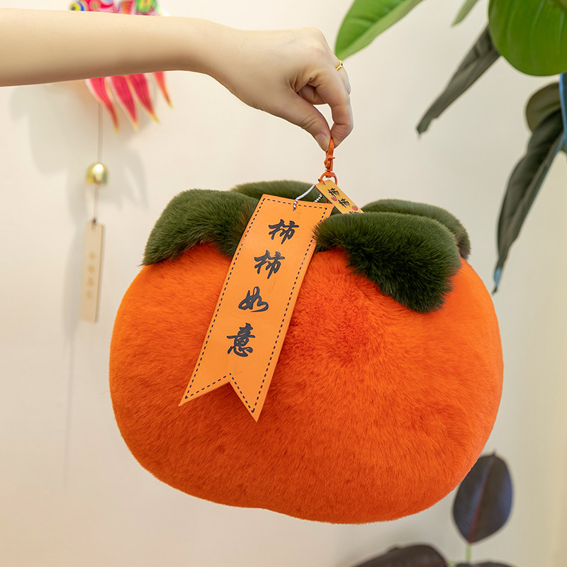 可爱金貂绒仿真柿子抱枕毛绒玩具软靠垫柿柿如意摆件新年礼物沙发