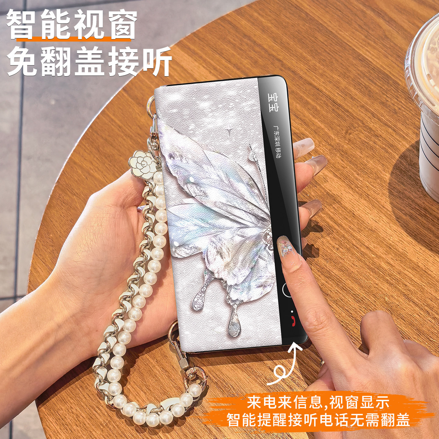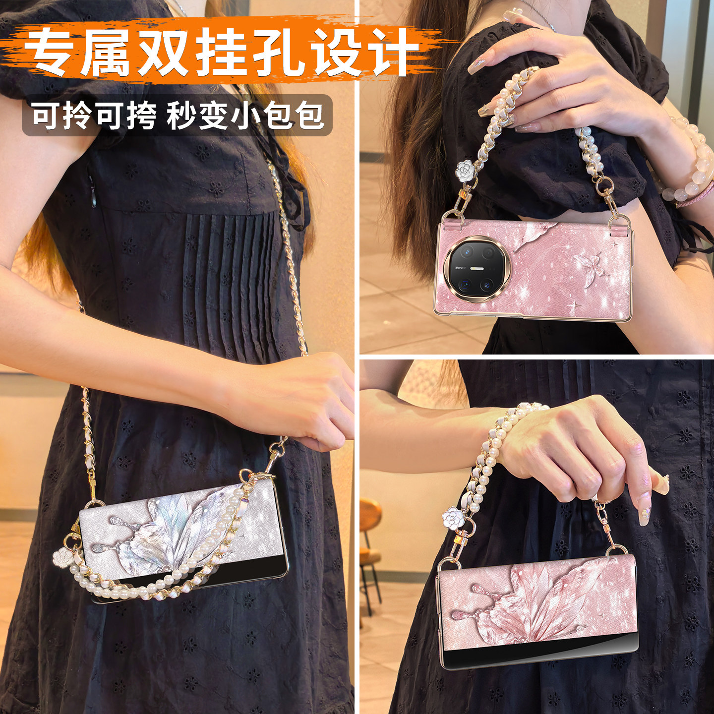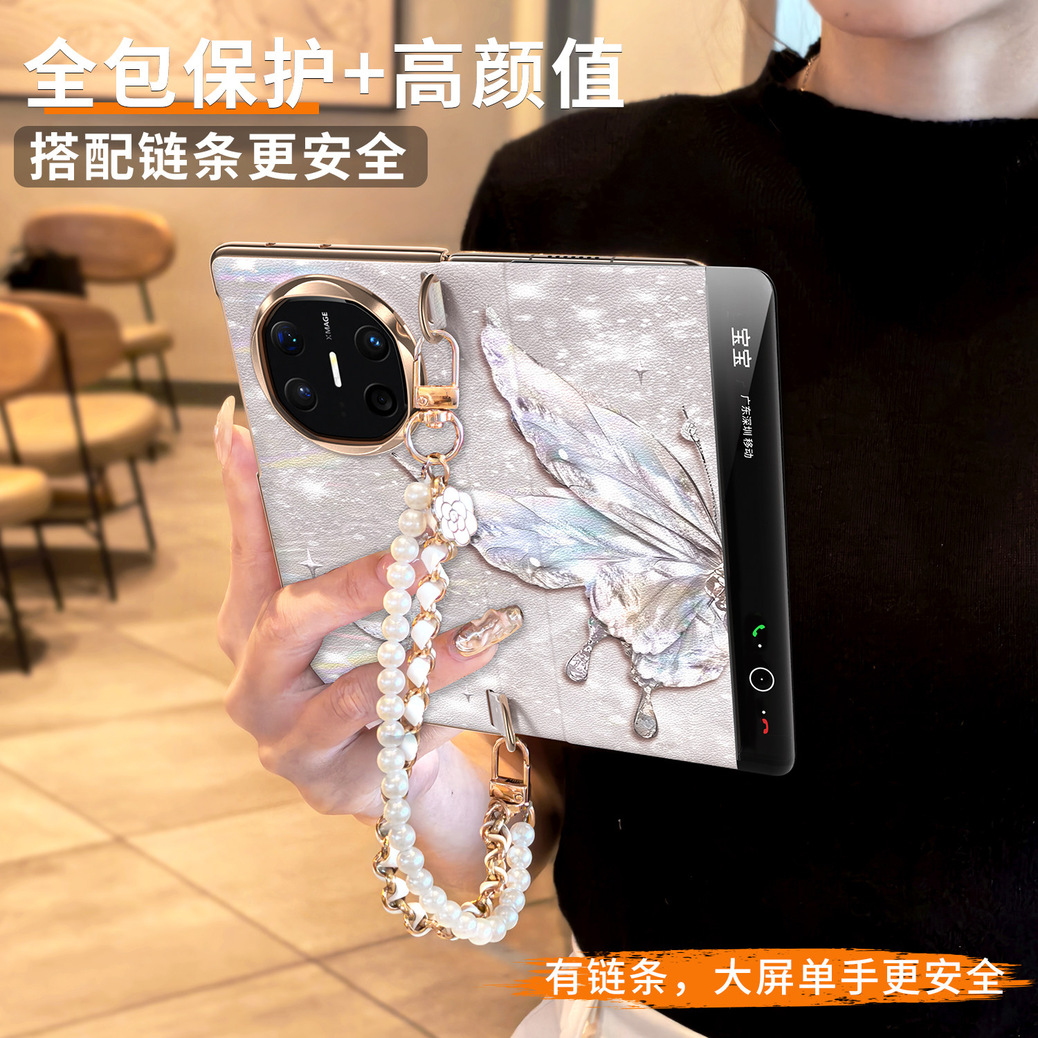 轻奢蝴蝶斜跨带挂绳适用华为matex6手机壳新款x7典藏版全包防摔高档皮纹matex5折叠屏mate翻盖磁吸x6保护套