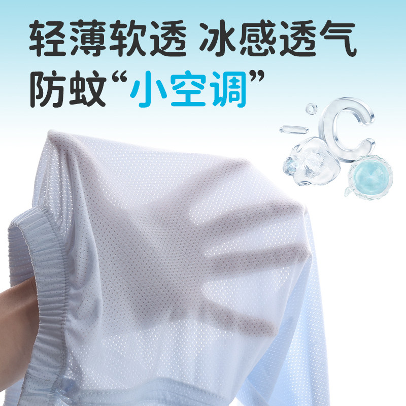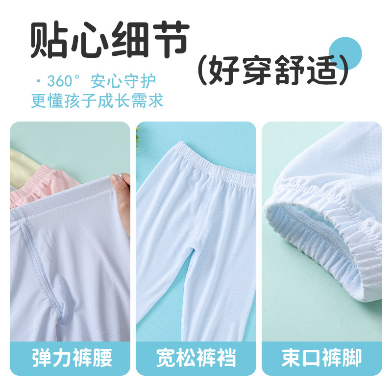 婧麒宝宝裤子夏薄款防蚊裤婴儿冰丝网眼透气长裤男宝宝开裆裤束脚