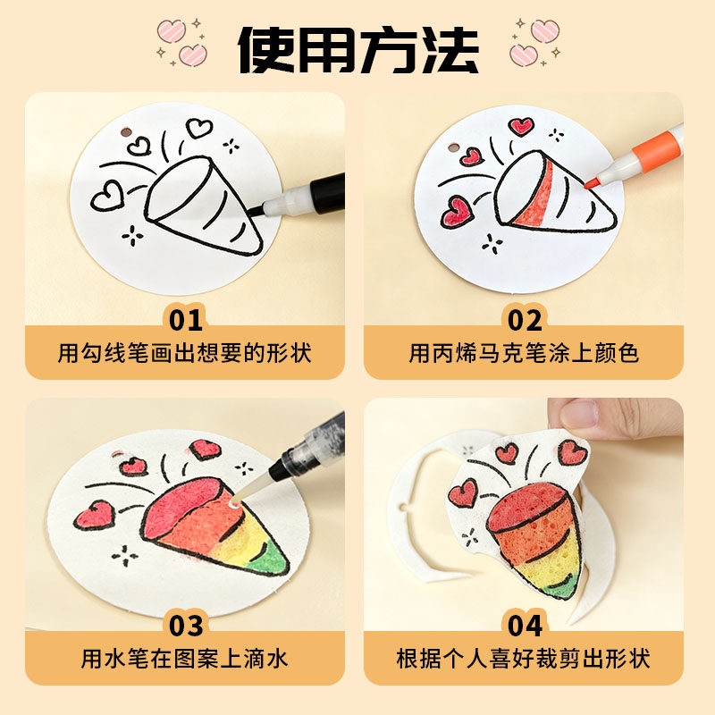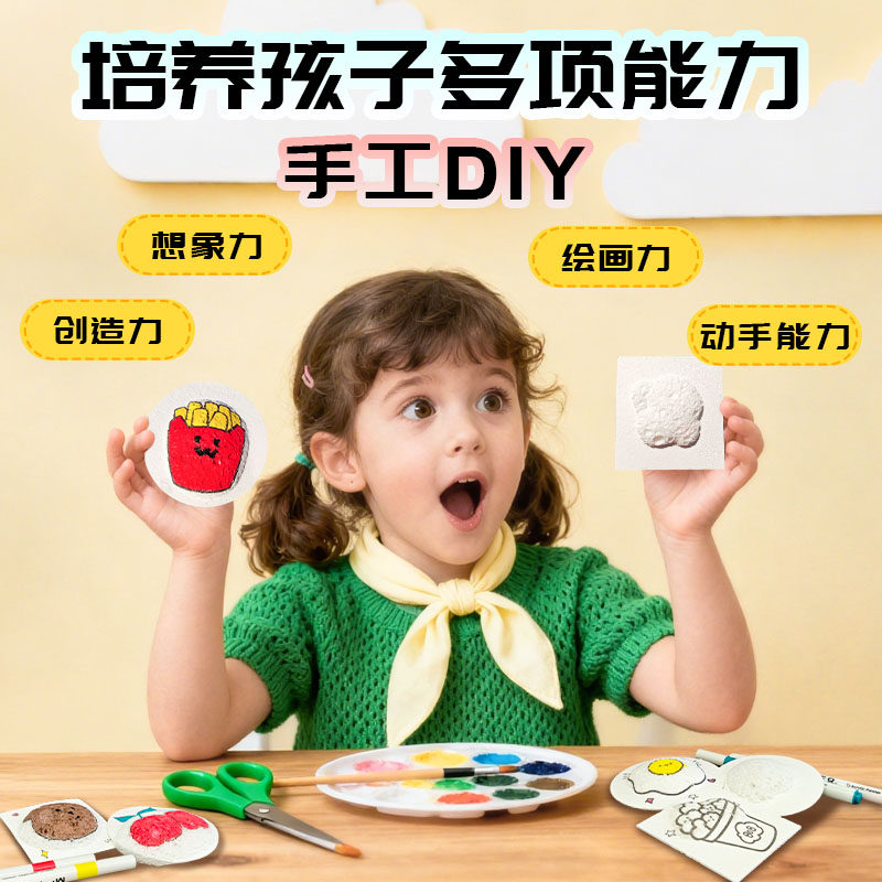 网红发泡肌理画儿童diy捏捏乐马克笔绘画自制木浆棉创意手工玩具