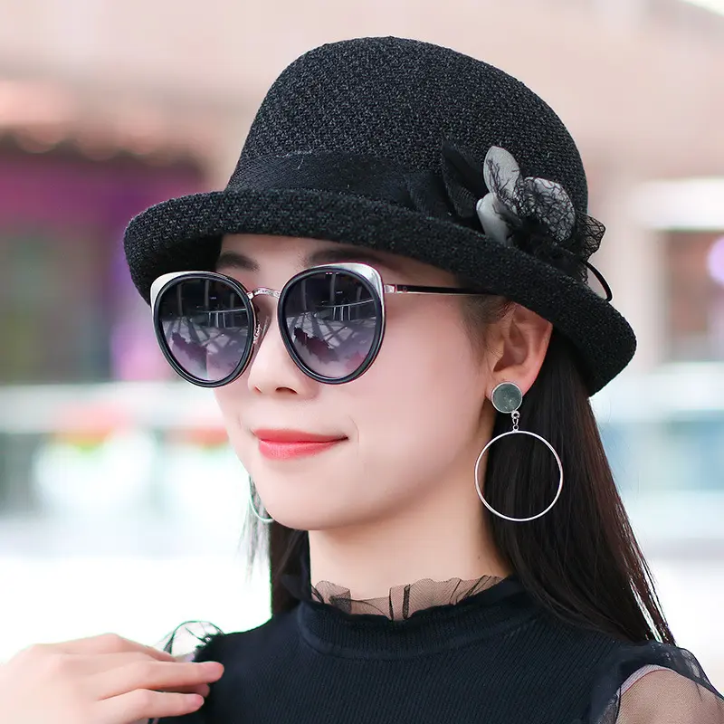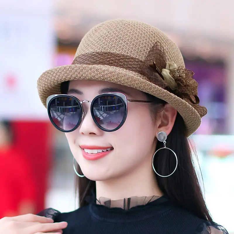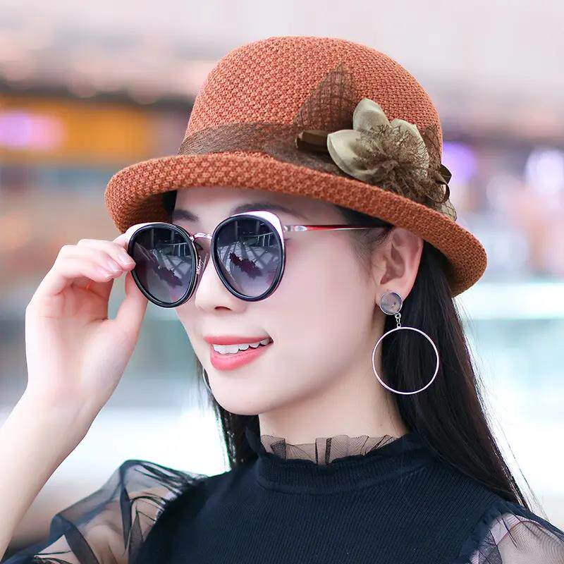 妈妈盆帽帽子女渔夫帽女士夏季百搭时尚薄款透气草帽礼帽卷边优雅