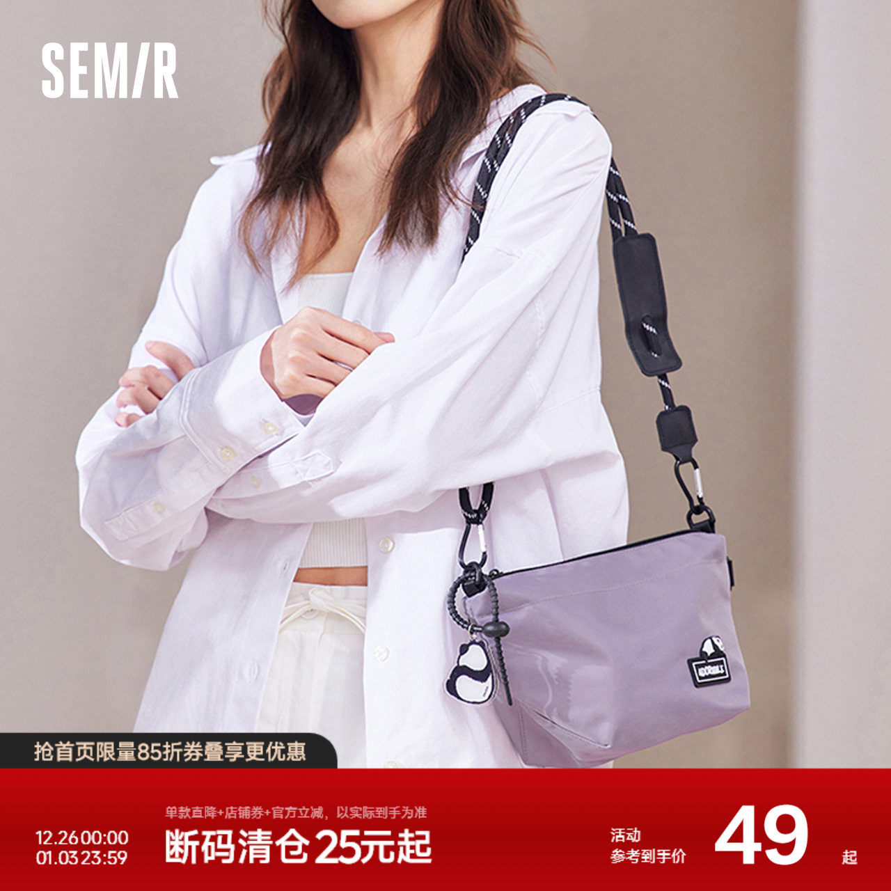 森马饺子包男熊猫系列潮酷工装风斜挎包2024新款户外运动情侣背包