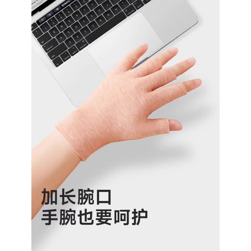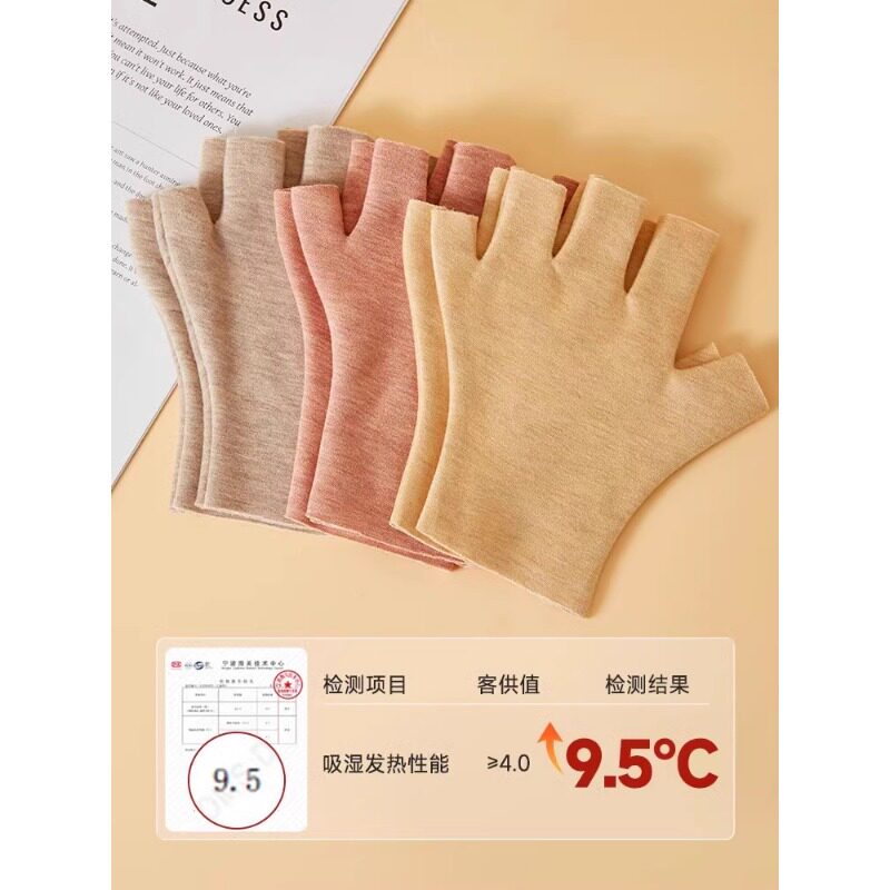 薄手套女款自发热半指手套女冬羊毛蚕丝情侣五指学生写字暖手德绒
