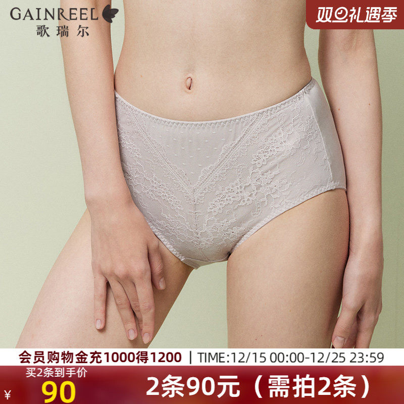 歌瑞尔蕾丝内裤女2025新款性感纯欲透气全棉裆亲肤中腰女士平角裤