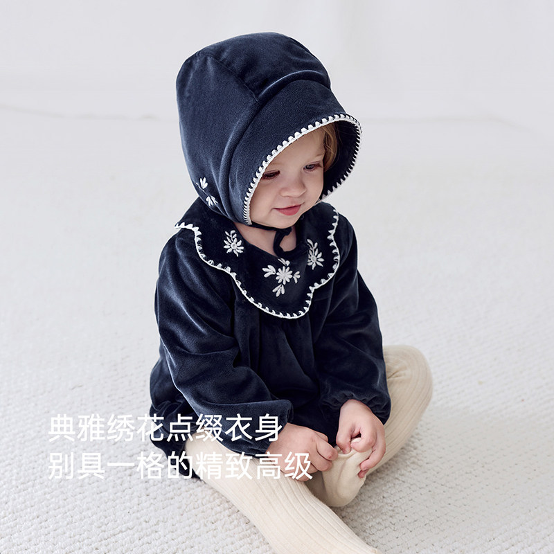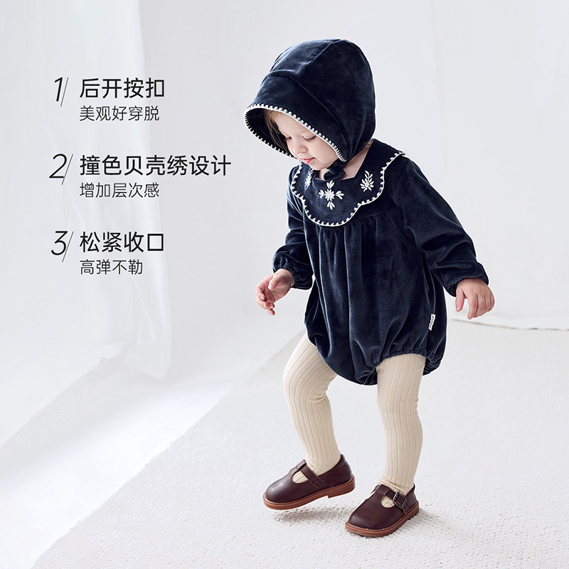 【清仓】babylove女宝宝包屁衣秋冬衣服婴儿三角哈衣爬服精致刺绣