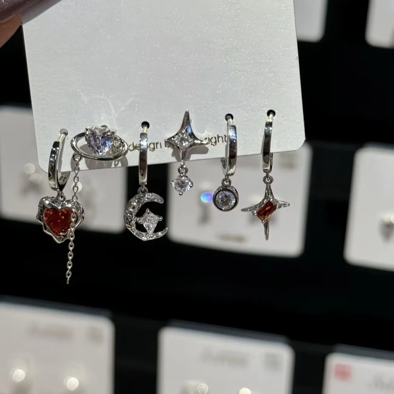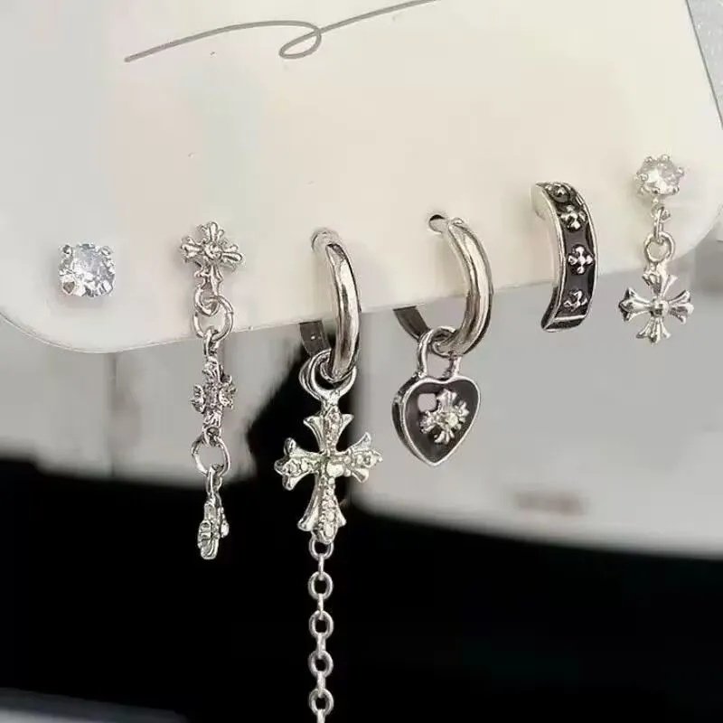 超酷grl ! 爱心锆石六件套耳钉甜酷耳圈小众设计件套耳扣耳饰