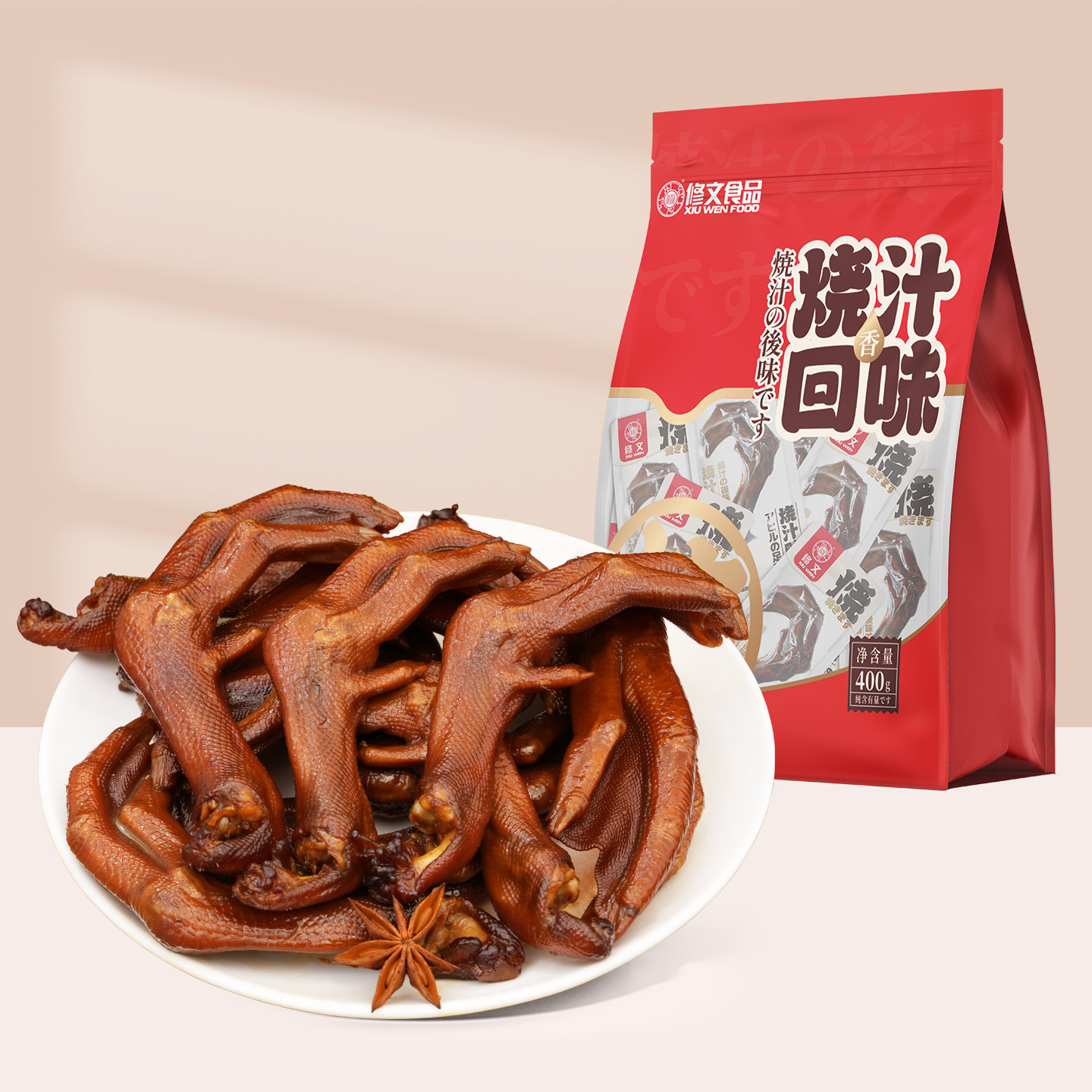 修文鸭掌温州特产烧汁鸭爪鸭脚开袋即食熟食休闲零食净重400g解馋
