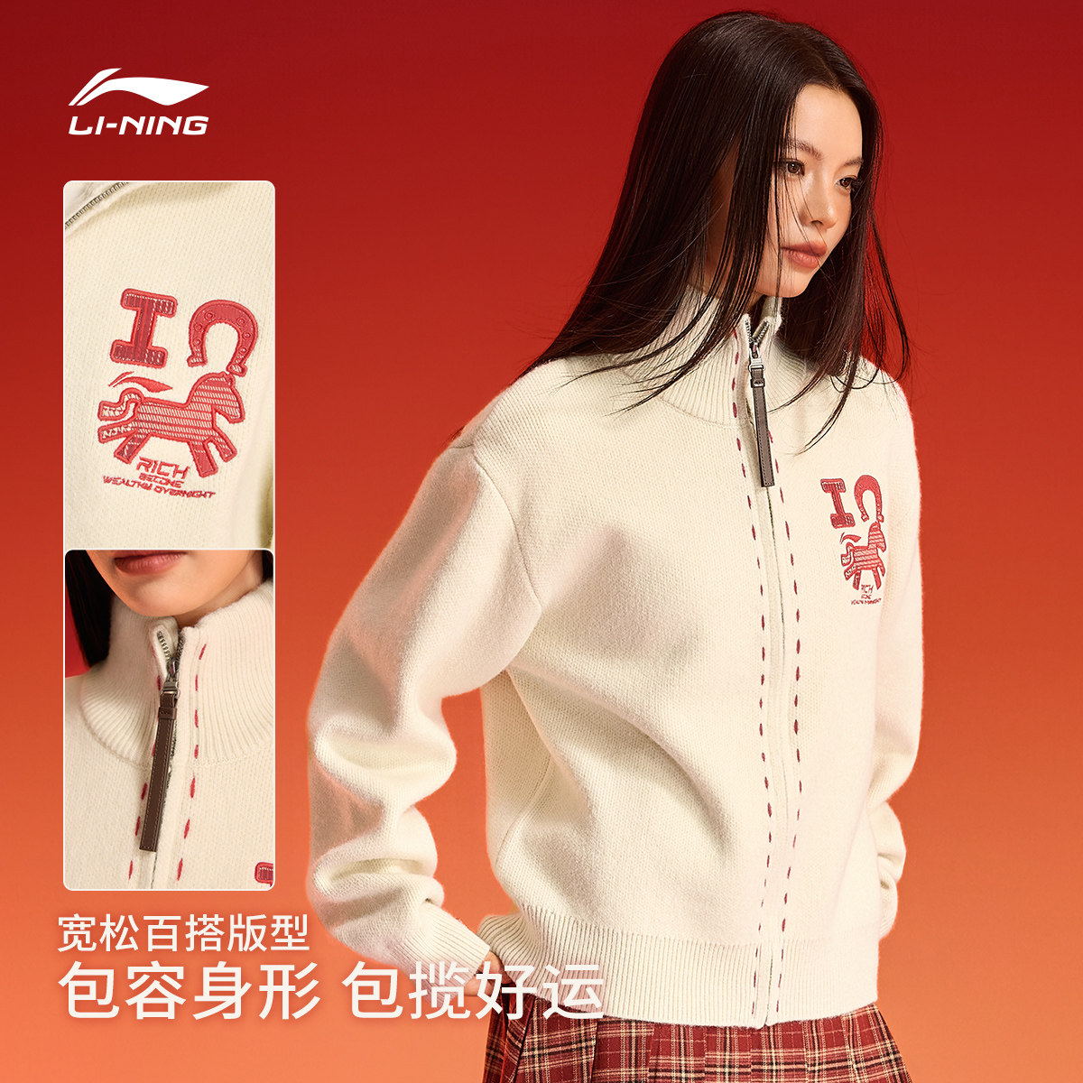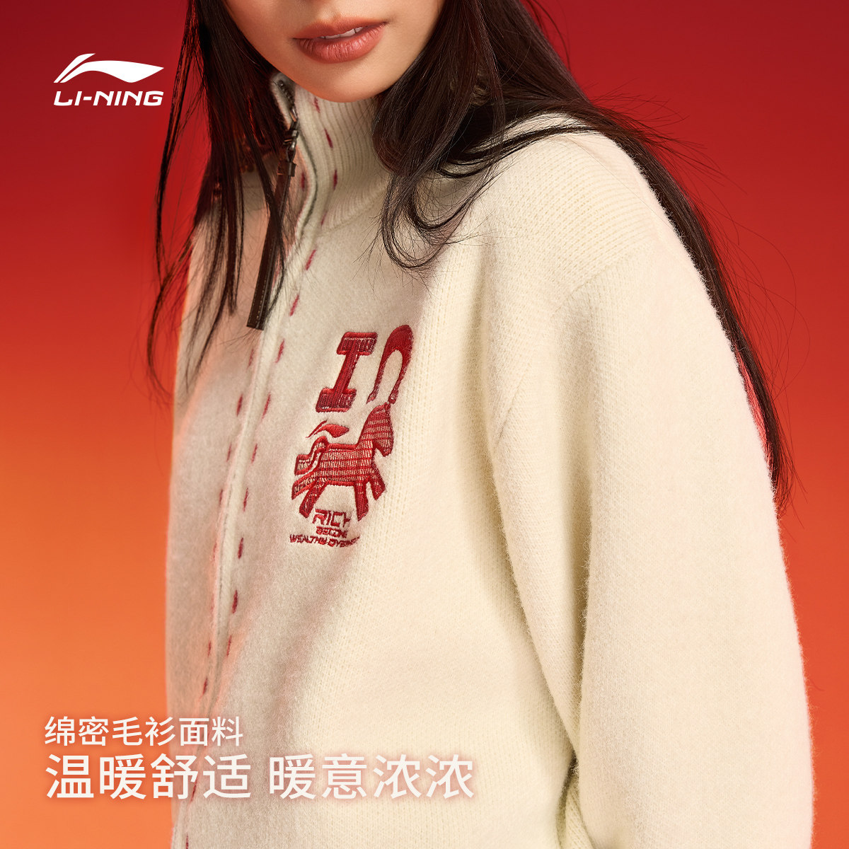 李宁马上有钱毛衣女春季2026新款长袖情侣装马年上衣针织编织衫男