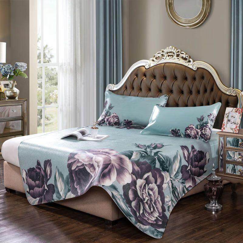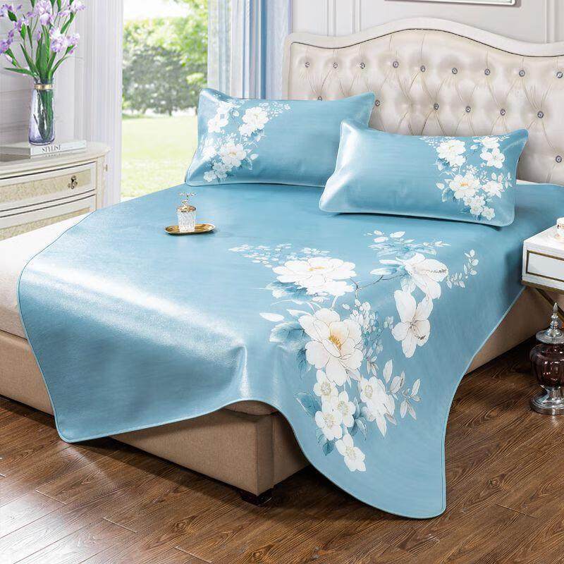 牛皮席头层水牛皮凉席三件套牛皮凉席真皮彩绘软席 特厚4.5mm花语