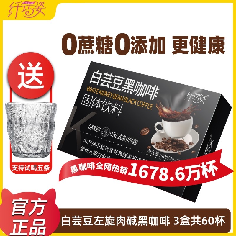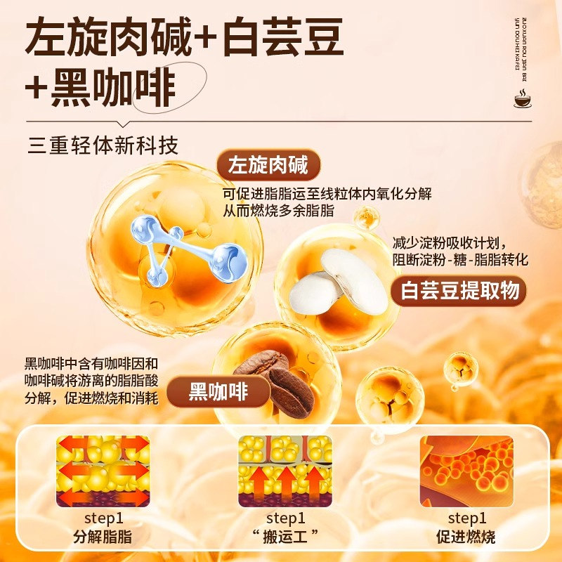 白芸豆黑咖啡粉减燃00脂美式防弹左旋肉碱速溶正品饮料固体健康
