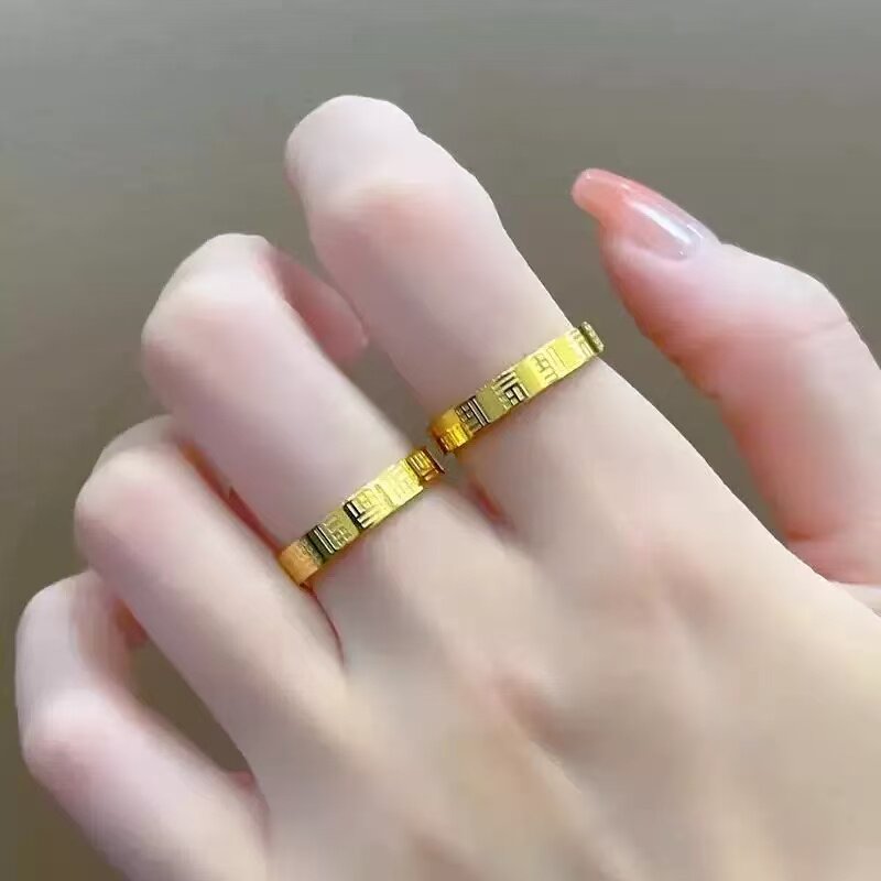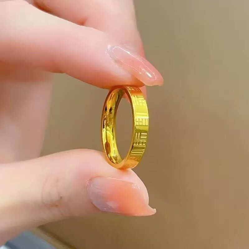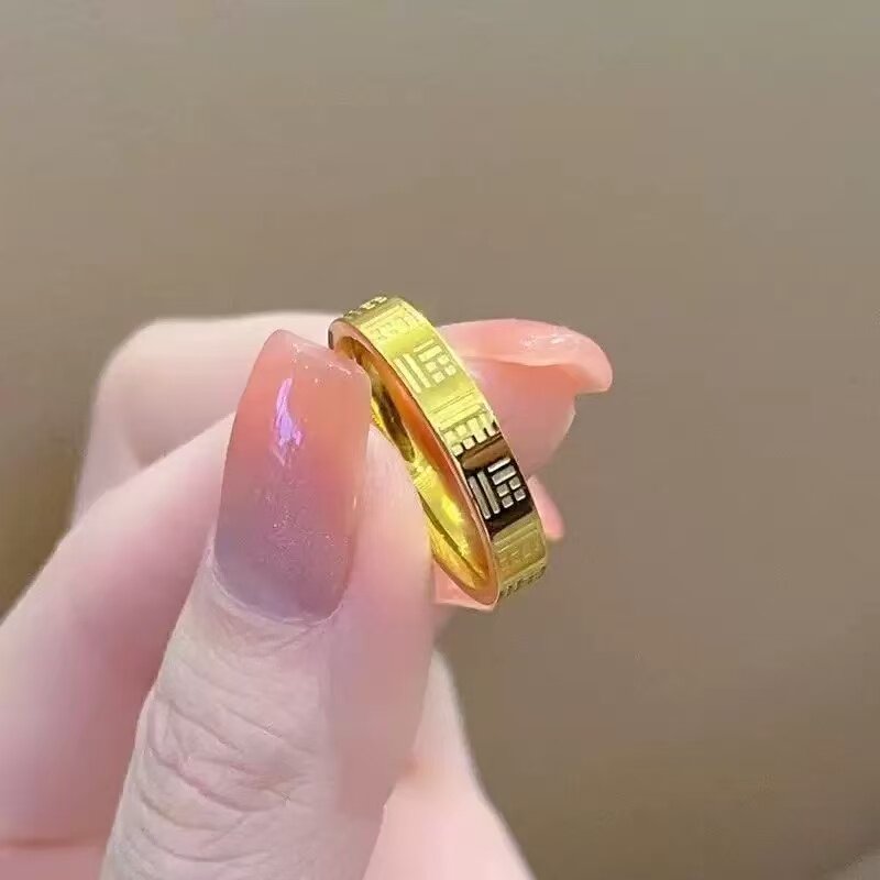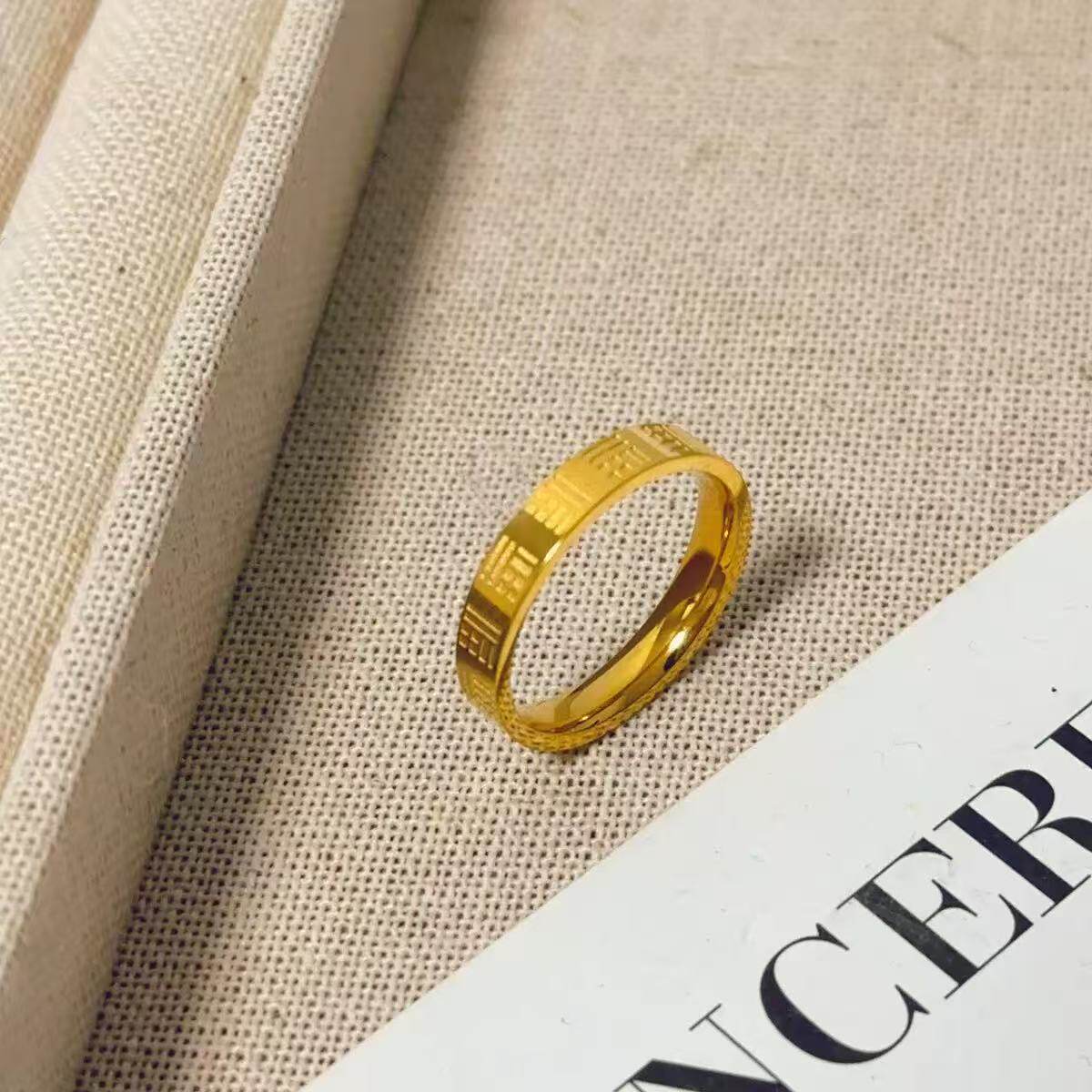 钛钢万福戒指女金色戒指实心轻奢食指素圈指环不怕水/不掉色/