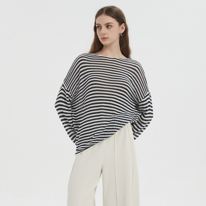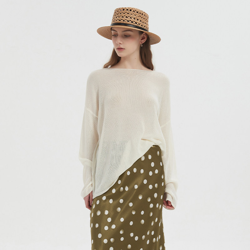 Petit Bari莱赛尔亚麻针织罩衫女 慵懒薄款镂空松弛透气防晒上衣