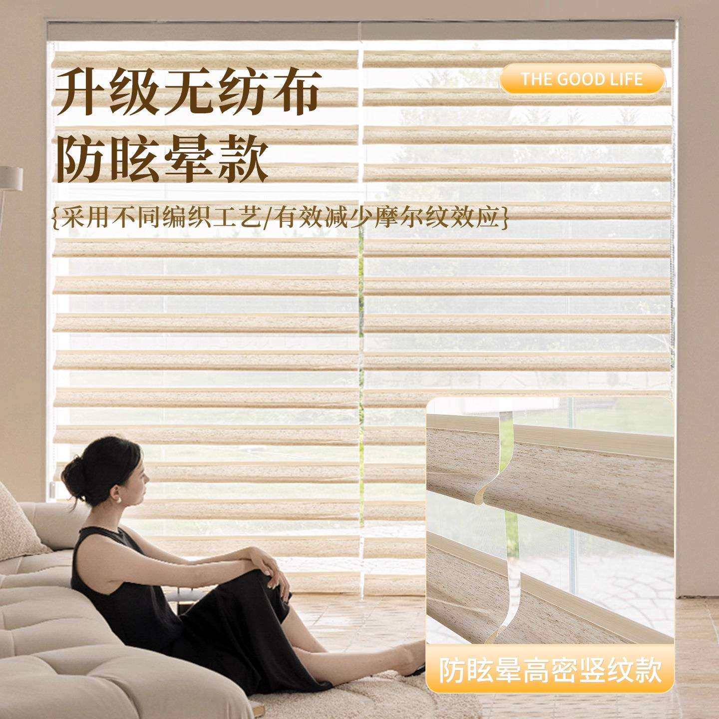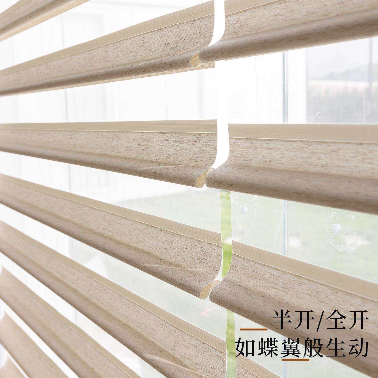 智能电动蝴蝶帘自动升降翻转调光语音遮光窗帘客厅书房百叶卷帘