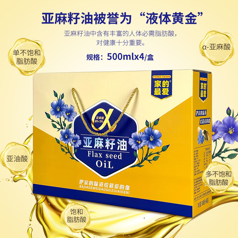 礼盒冷榨一级亚麻籽油500mlx4瓶礼盒装油团购礼品食用送礼瓶装