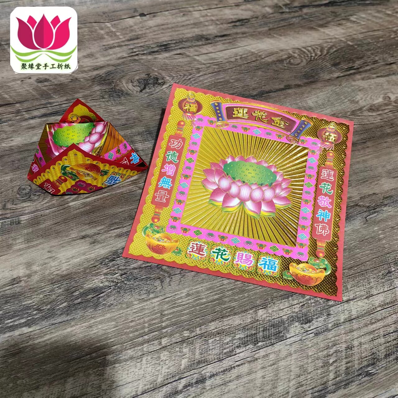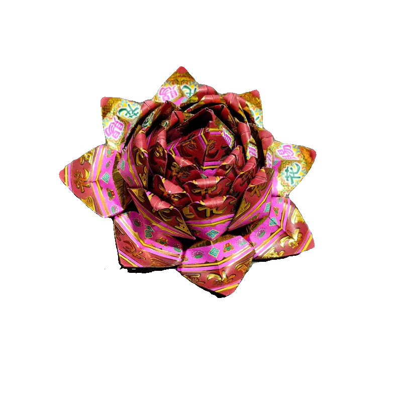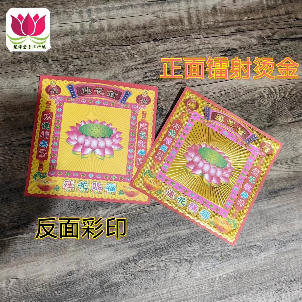 莲花金镭射烫金纸反面彩印19*19正方形40张/包观音折莲花元宝烧化