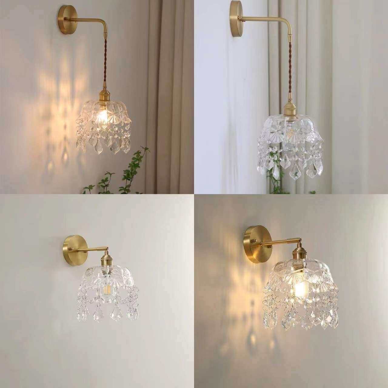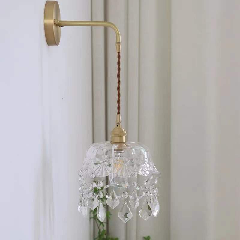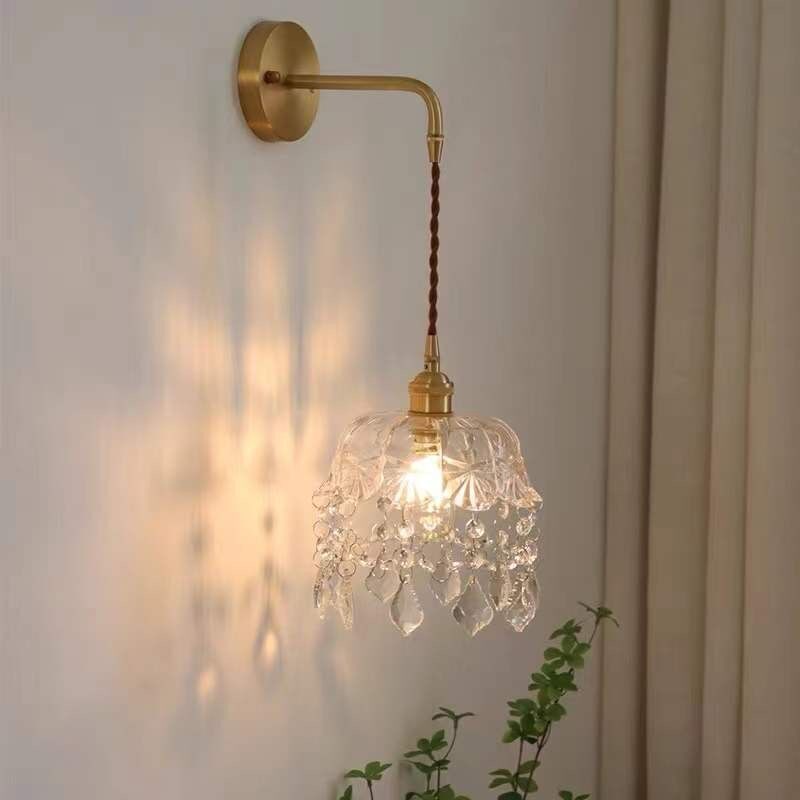 壁灯客厅水晶壁灯床头灯复古轻奢水晶小吊灯过道玄关法式壁灯简约