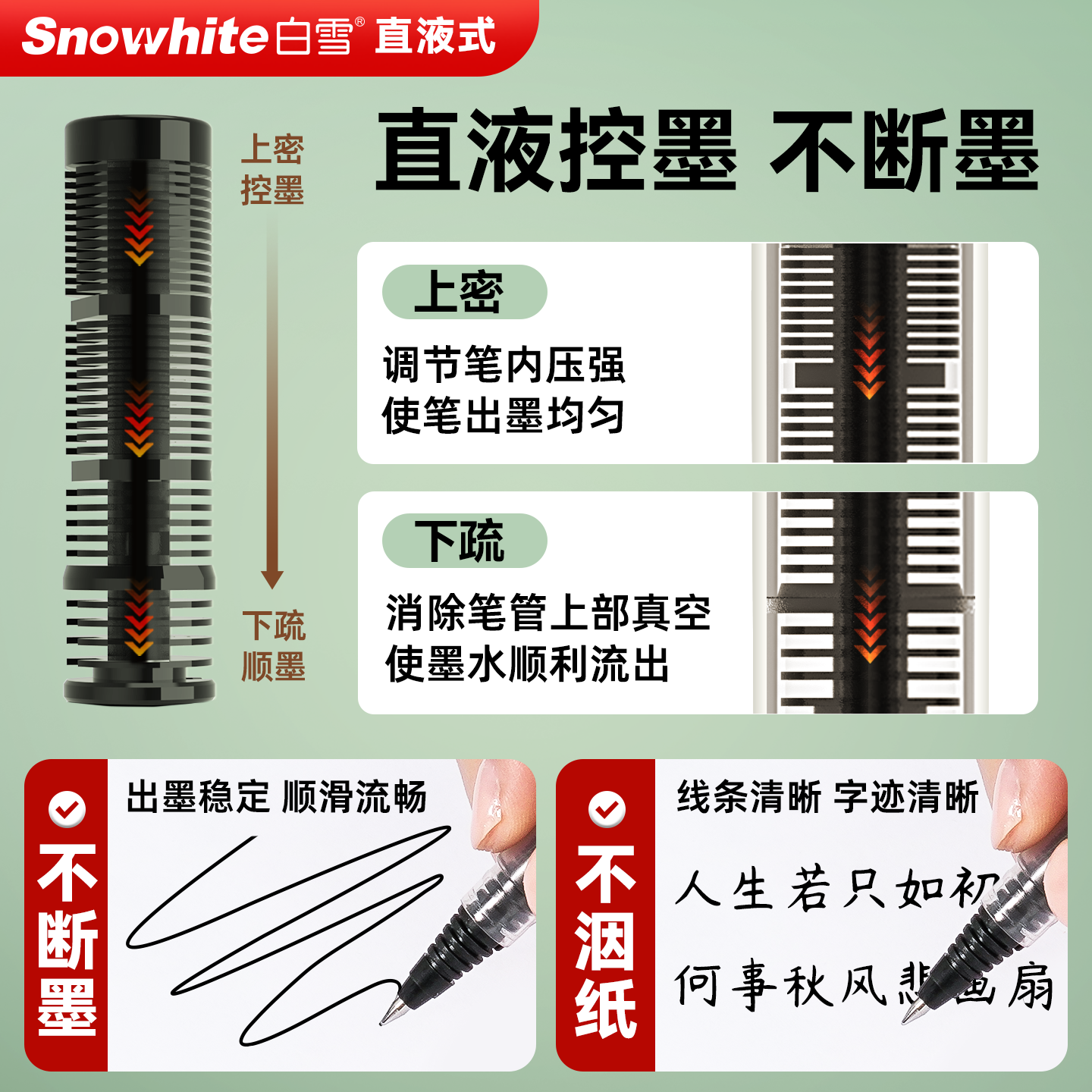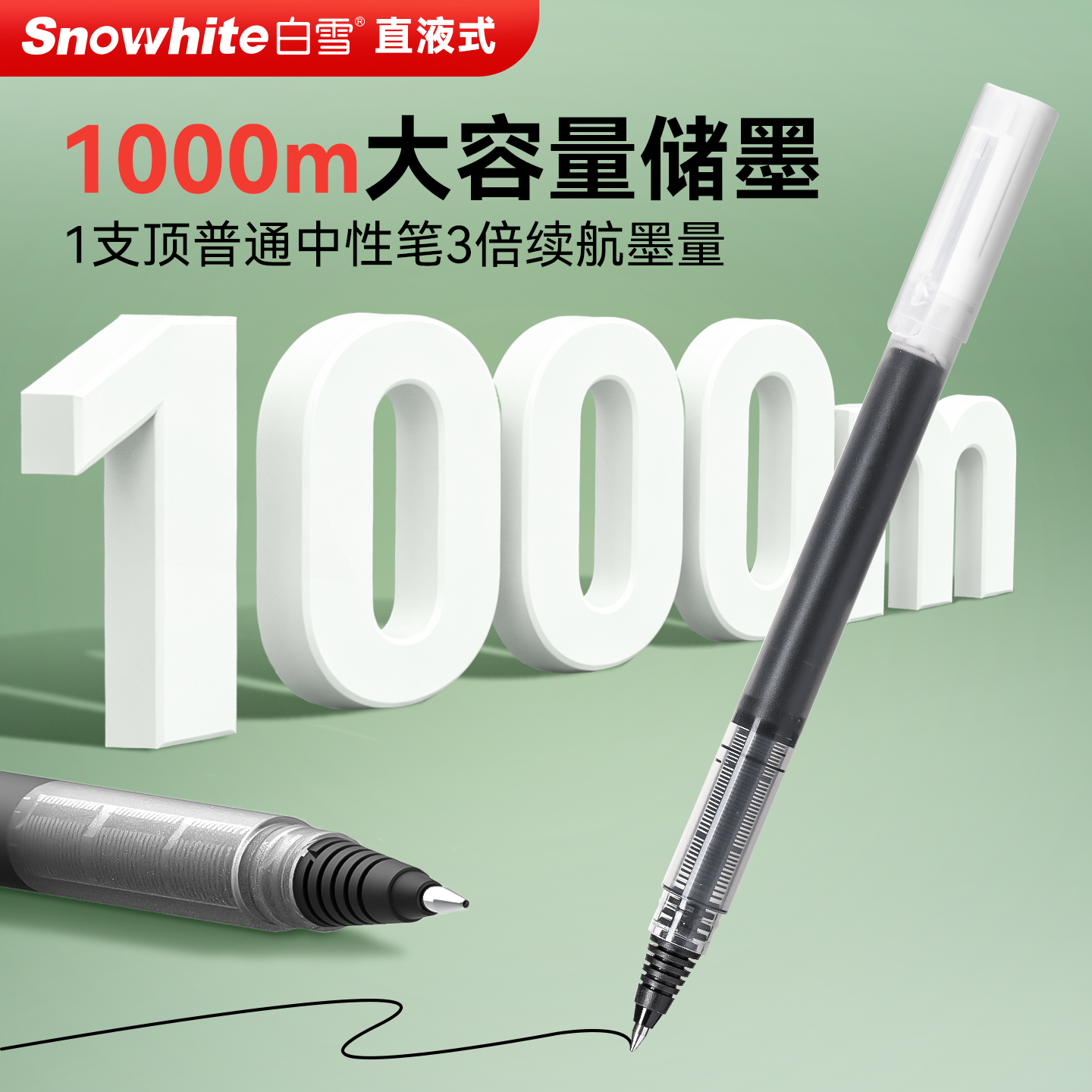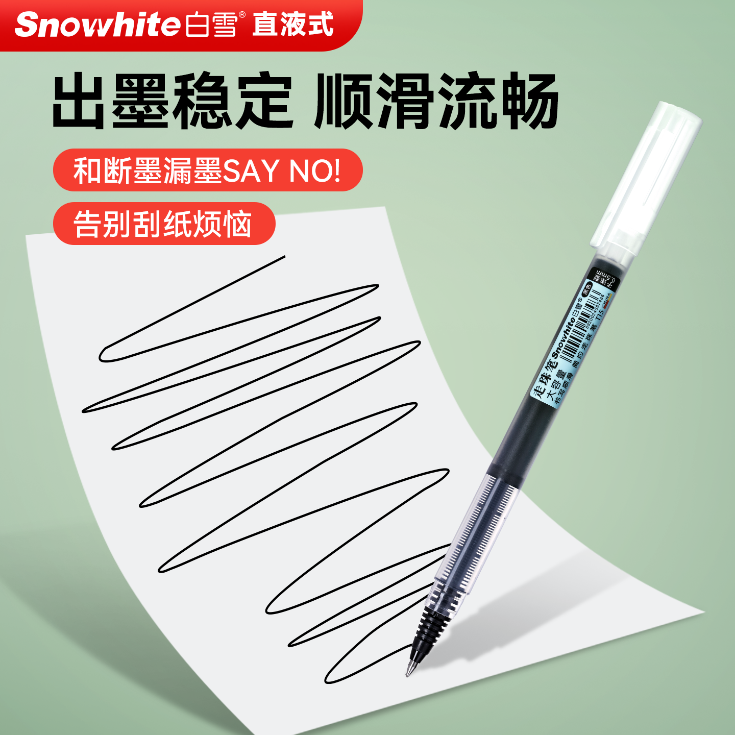 白雪直液式走珠笔速干彩色中性笔针管笔黑笔速干高颜值0.5mm签字笔考试学生专用笔黑笔红笔刷题笔ins风T1516