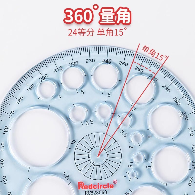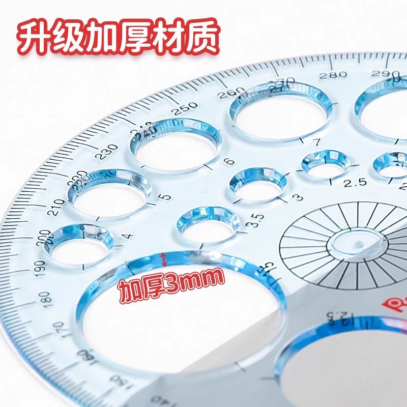 全圆仪画圆圆尺透明画圆模板多功能尺子小学生360度量角器设计几何绘图格子套尺家具建筑圆弧形模版异形洞尺