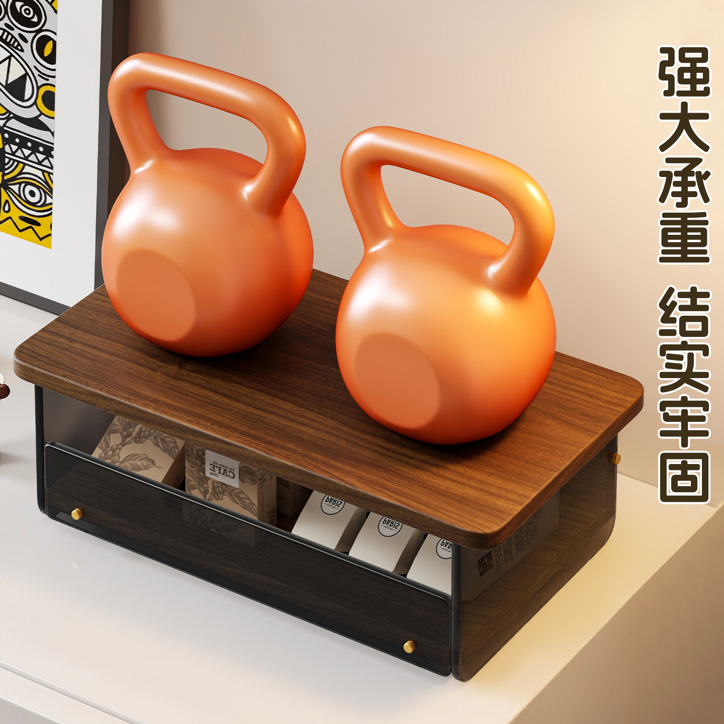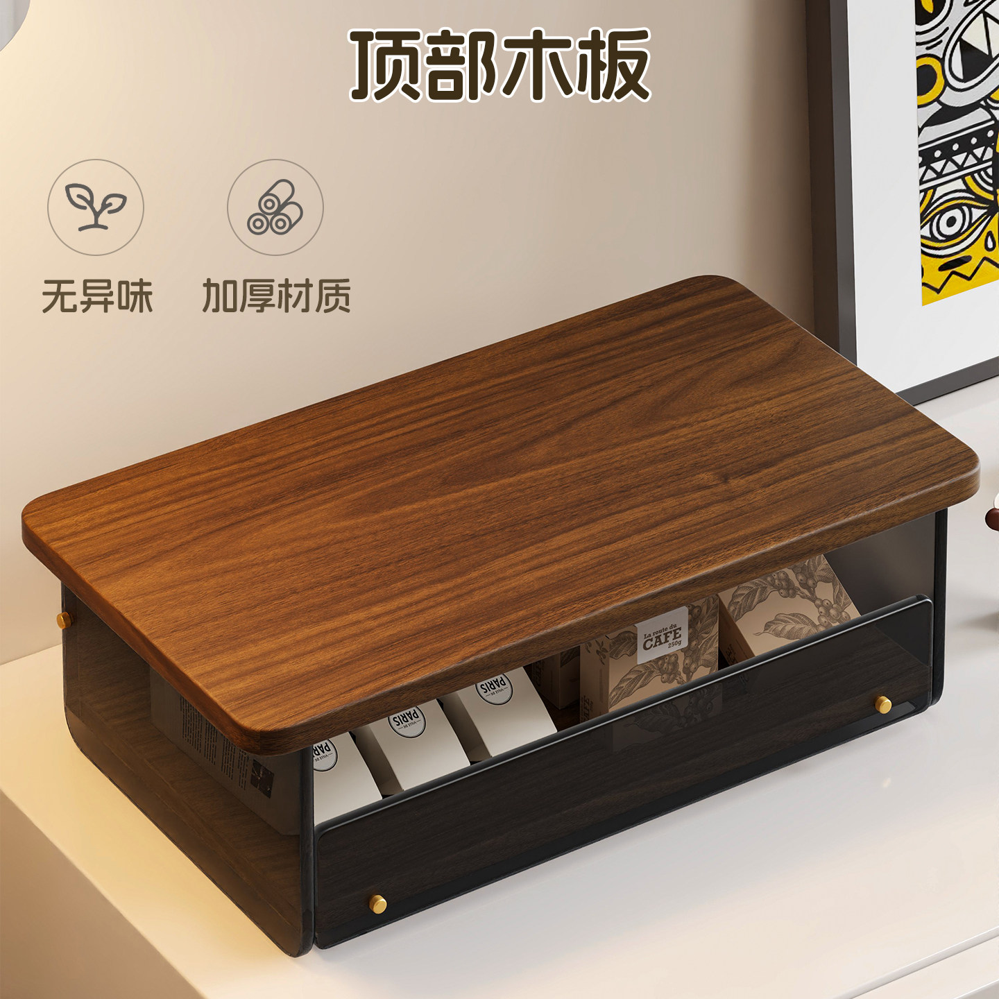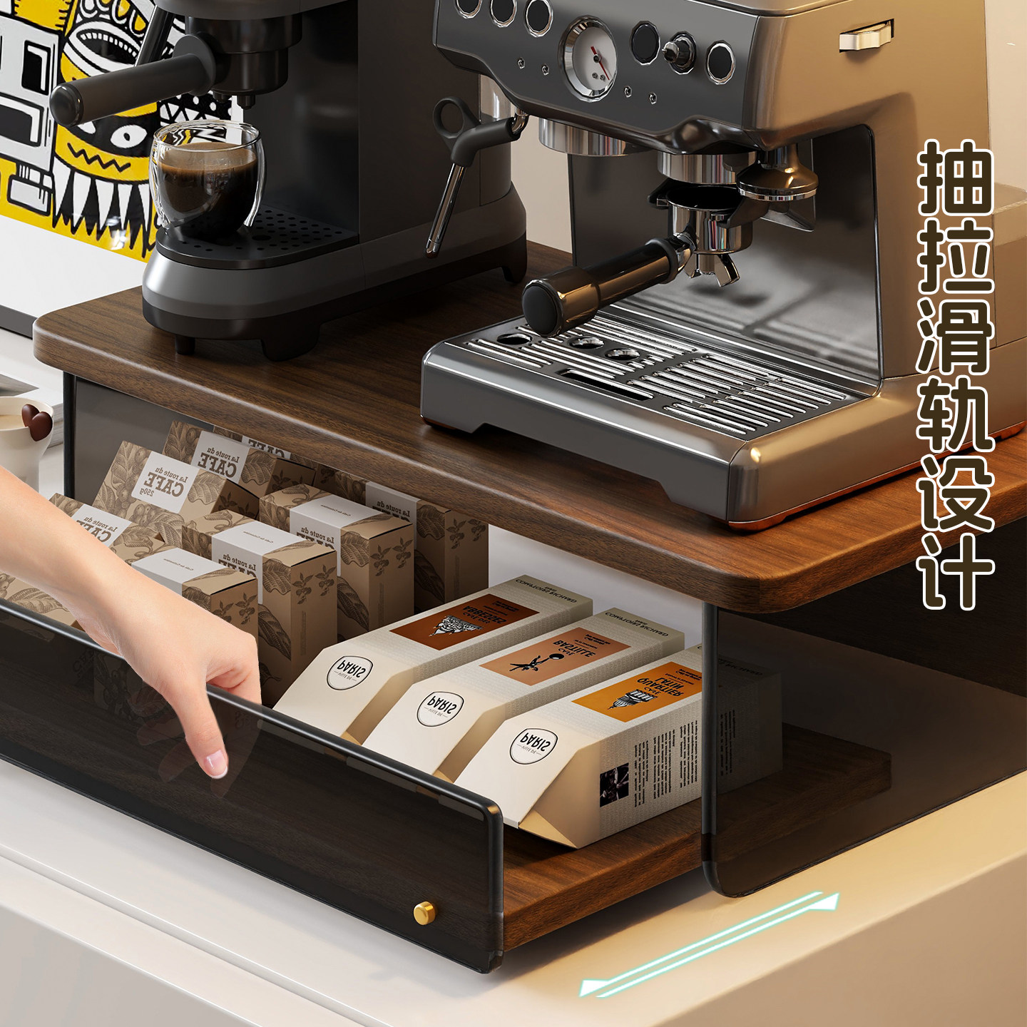 咖啡机置物架可抽拉餐边柜分层多功能放置架台面咖啡豆收纳储物盒