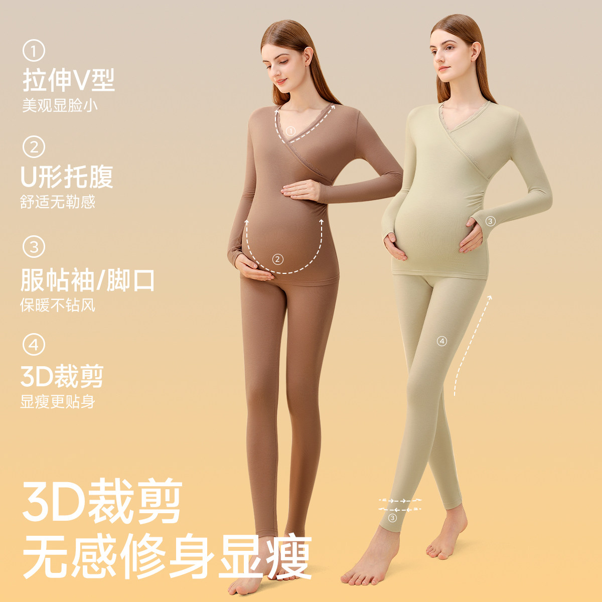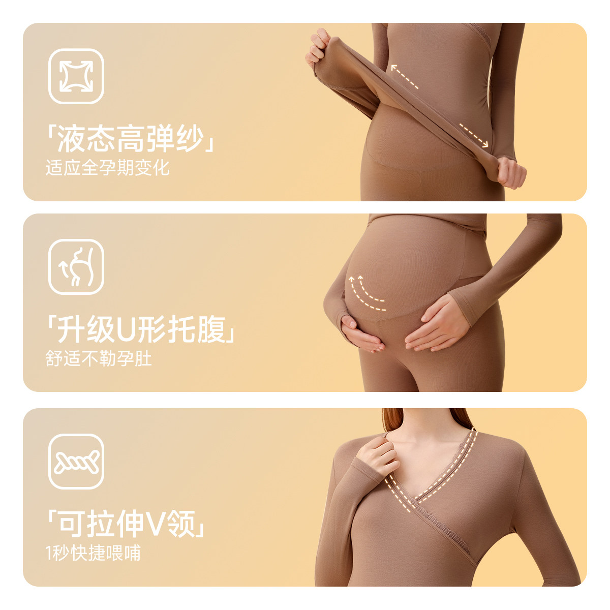 婧麒孕妇秋衣秋裤套装保暖内衣孕期打底产后哺乳喂奶大码月子服冬