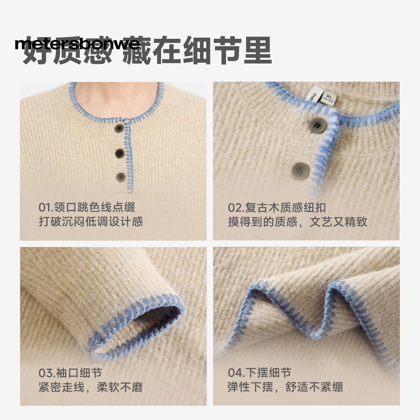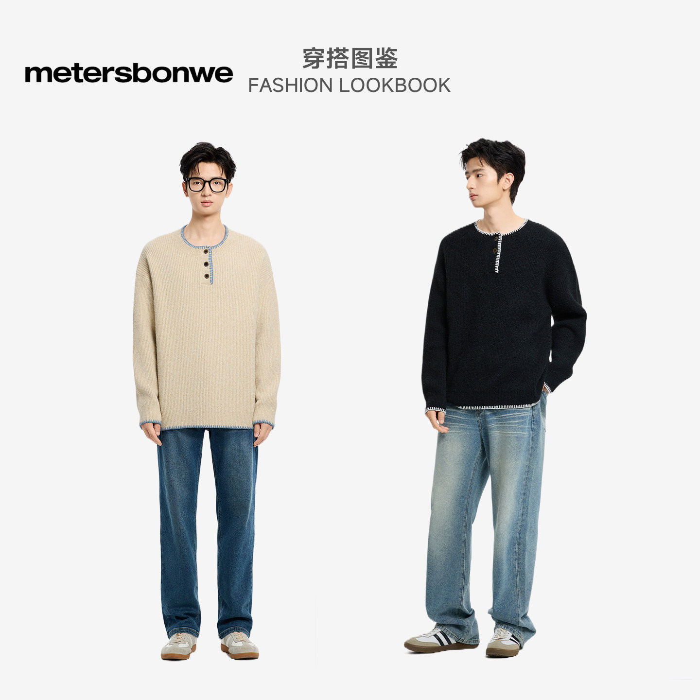 美特斯邦威男毛衣冬季新款潮流高街慵懒风撞色宽松圆领毛衫