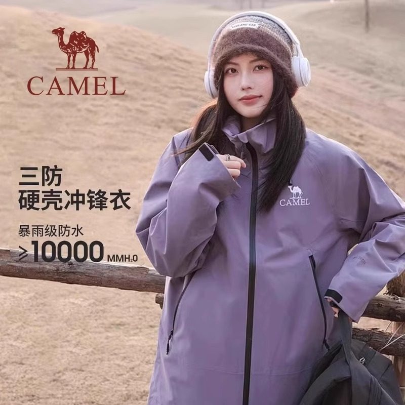 骆驼女装单层冲锋衣2025秋冬新款户外防风防水连帽立领男女款外套