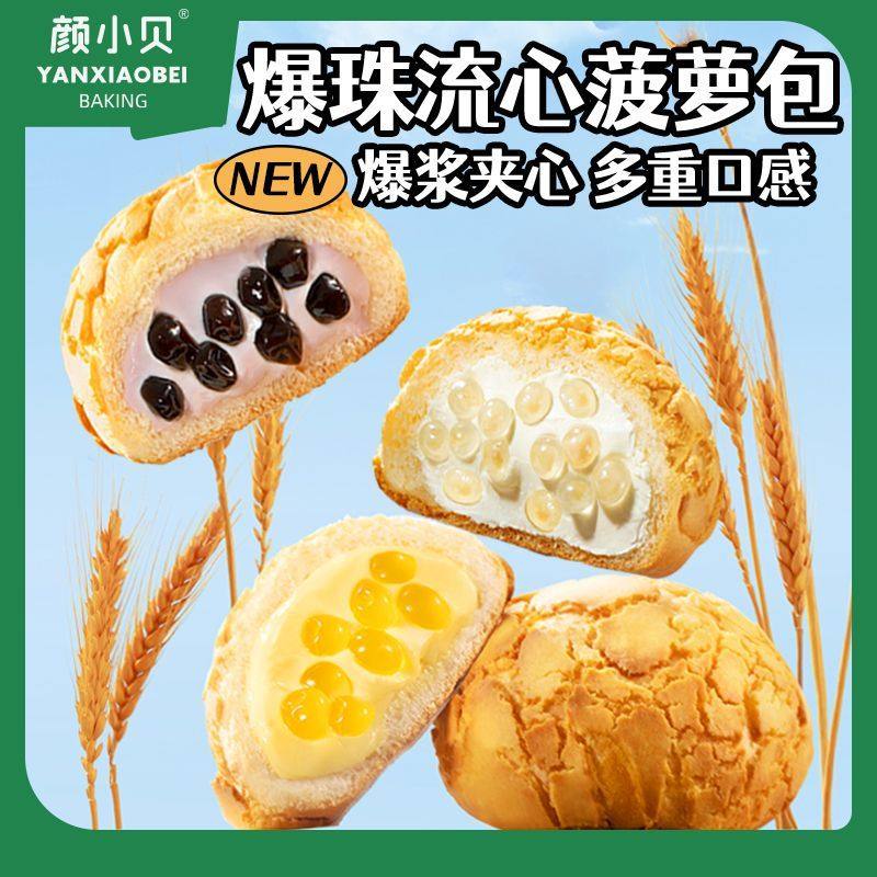 颜小贝菠萝包爆珠流心味宿舍早餐代餐夹心面包食饱腹解馋休闲批发