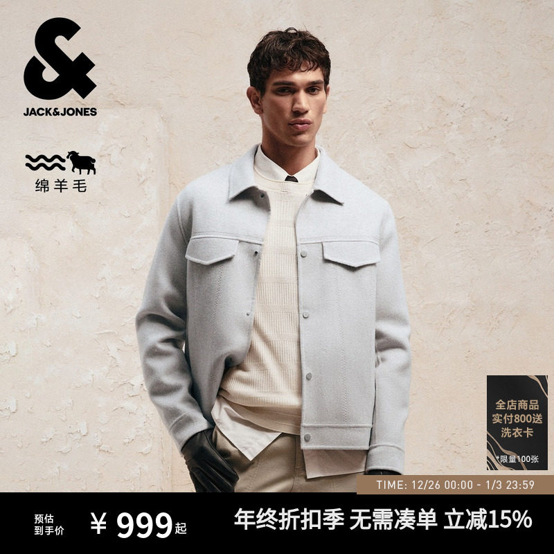 杰克琼斯男装秋季毛呢大衣2025年新款字母刺绣纯色通勤短款外套