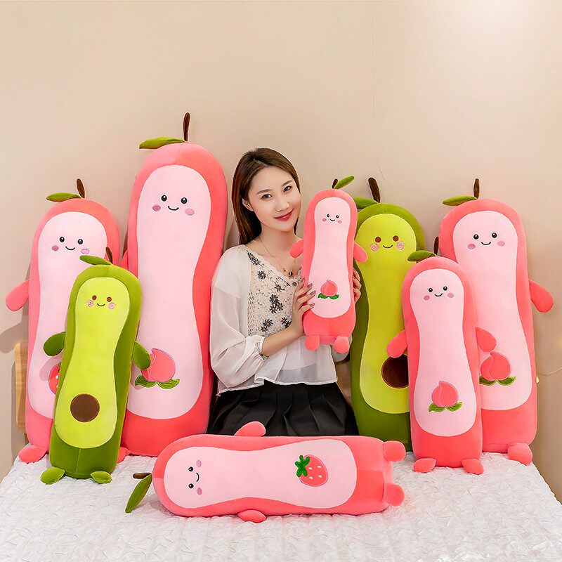 创意蜜桃子牛油果抱枕长条枕头睡觉夹腿床上超软粉色可爱毛绒玩具