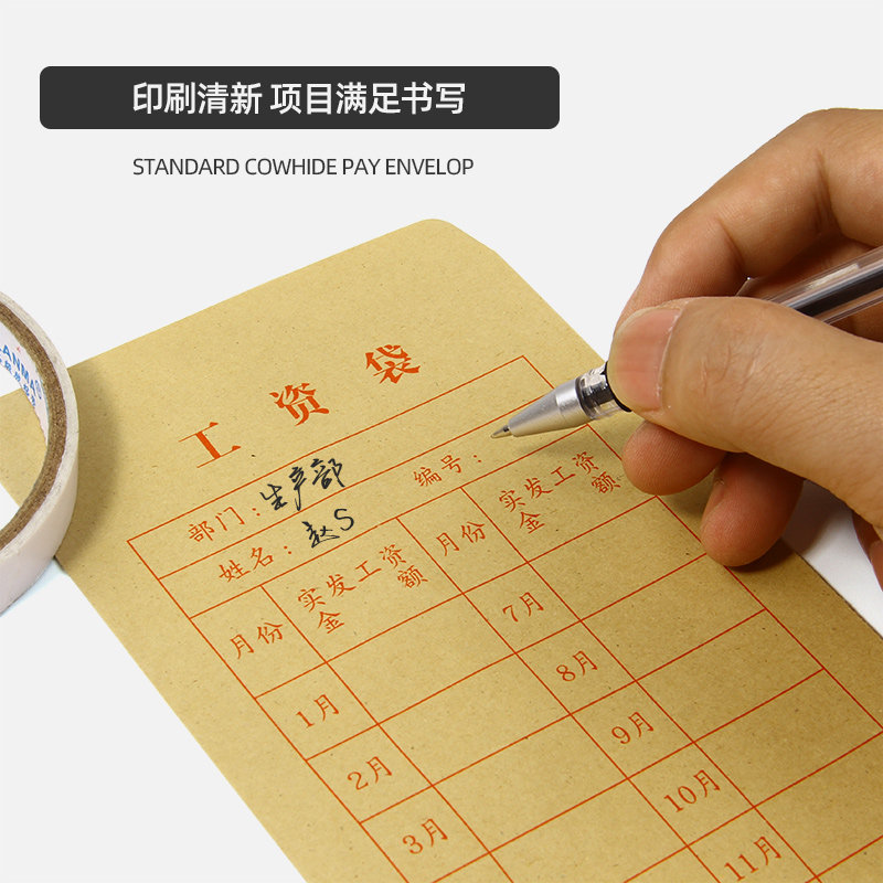 1000个装工资袋信封牛皮纸工资发放袋现金袋发工资信封袋专用装钱袋子加厚薪资信封袋黄色牛皮信封2号5号财务