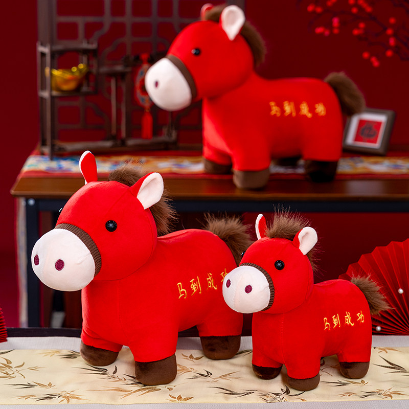 马年吉祥物公仔毛绒玩具红色生肖马玩偶摆件新年活动礼物定制Logo