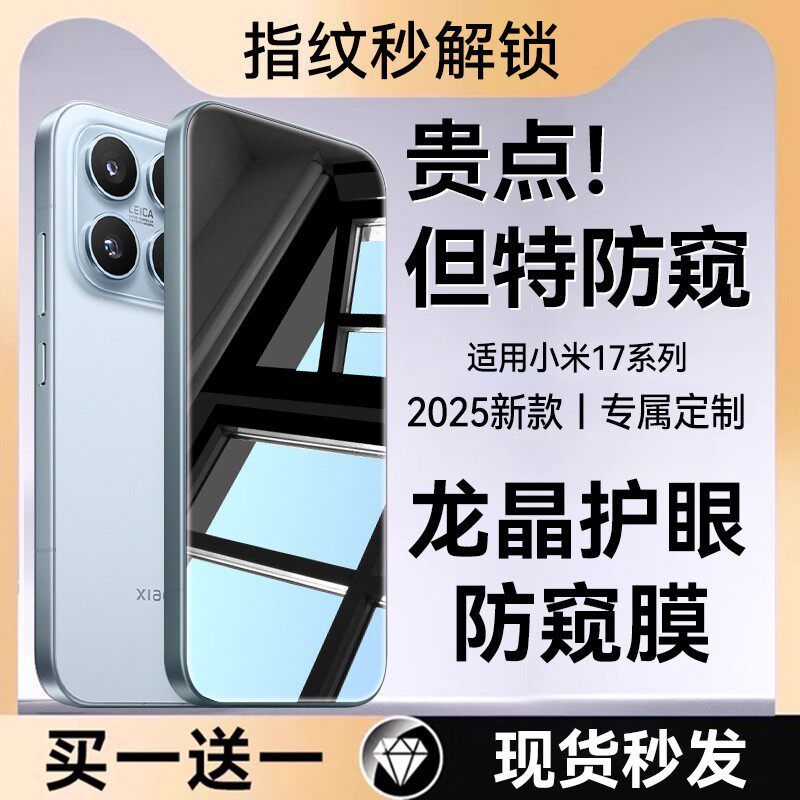 【360°护眼防窥龙晶秒贴】欧炫适用小米17promax钢化膜17promax手机膜1415ultra新款13指纹12解锁xiaomi14贴