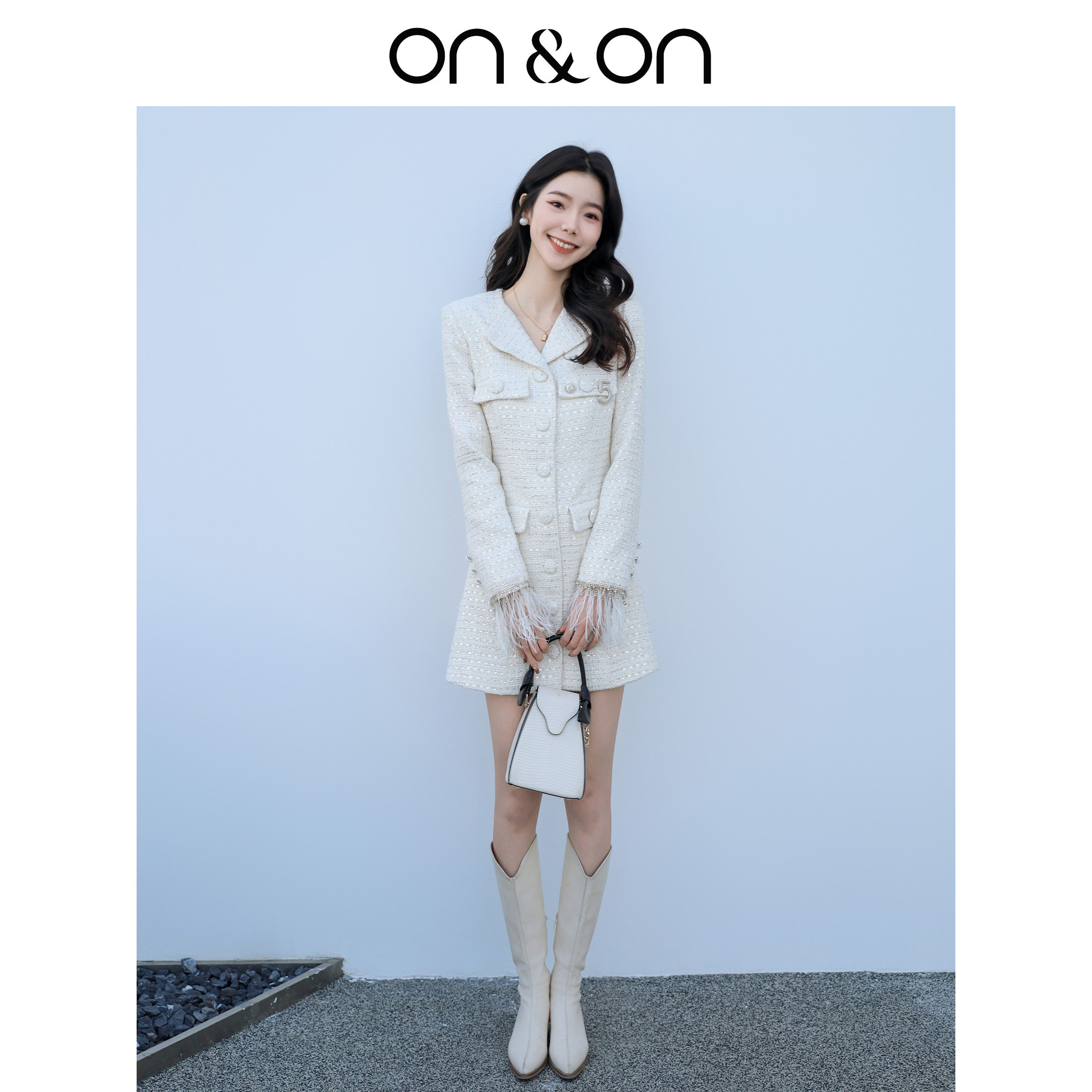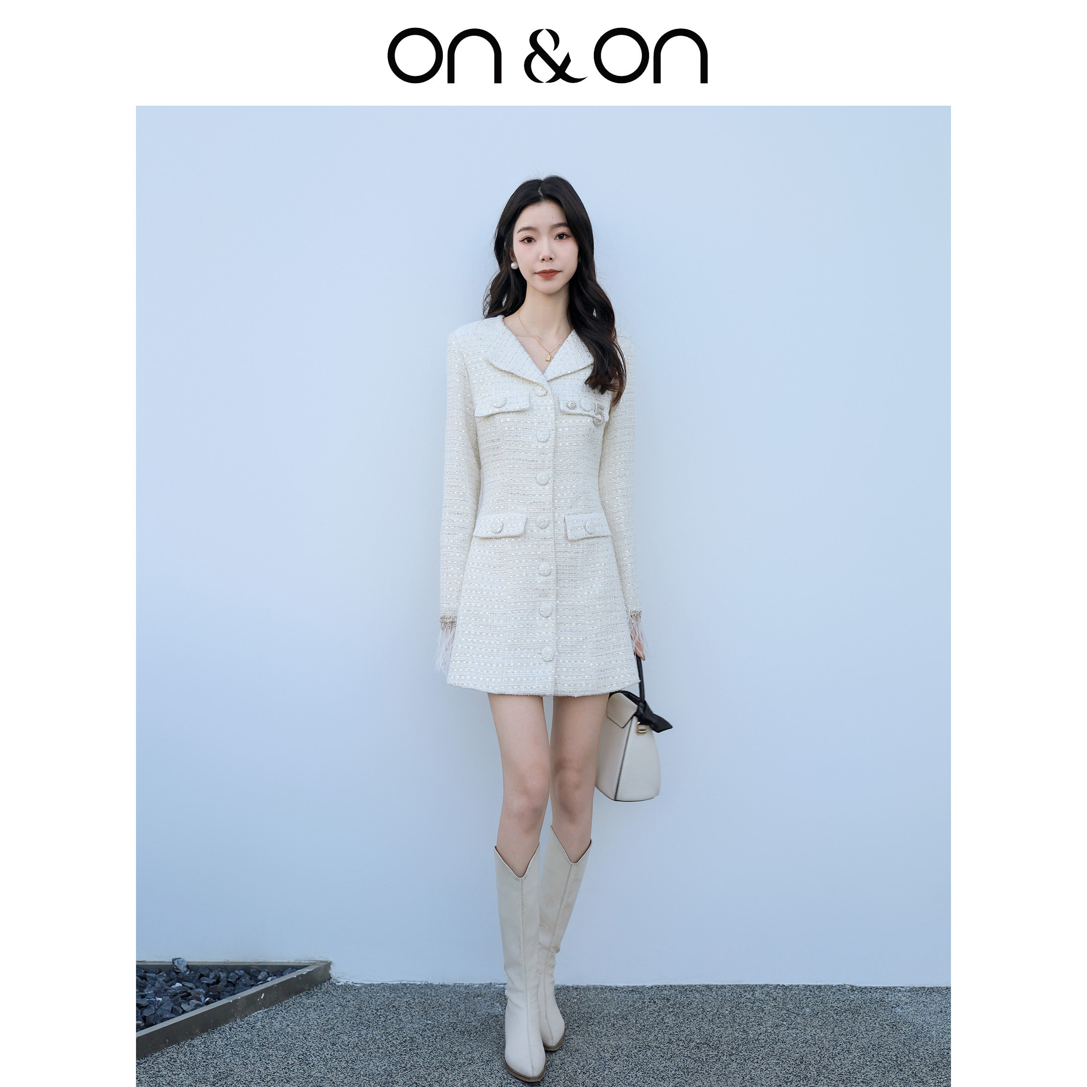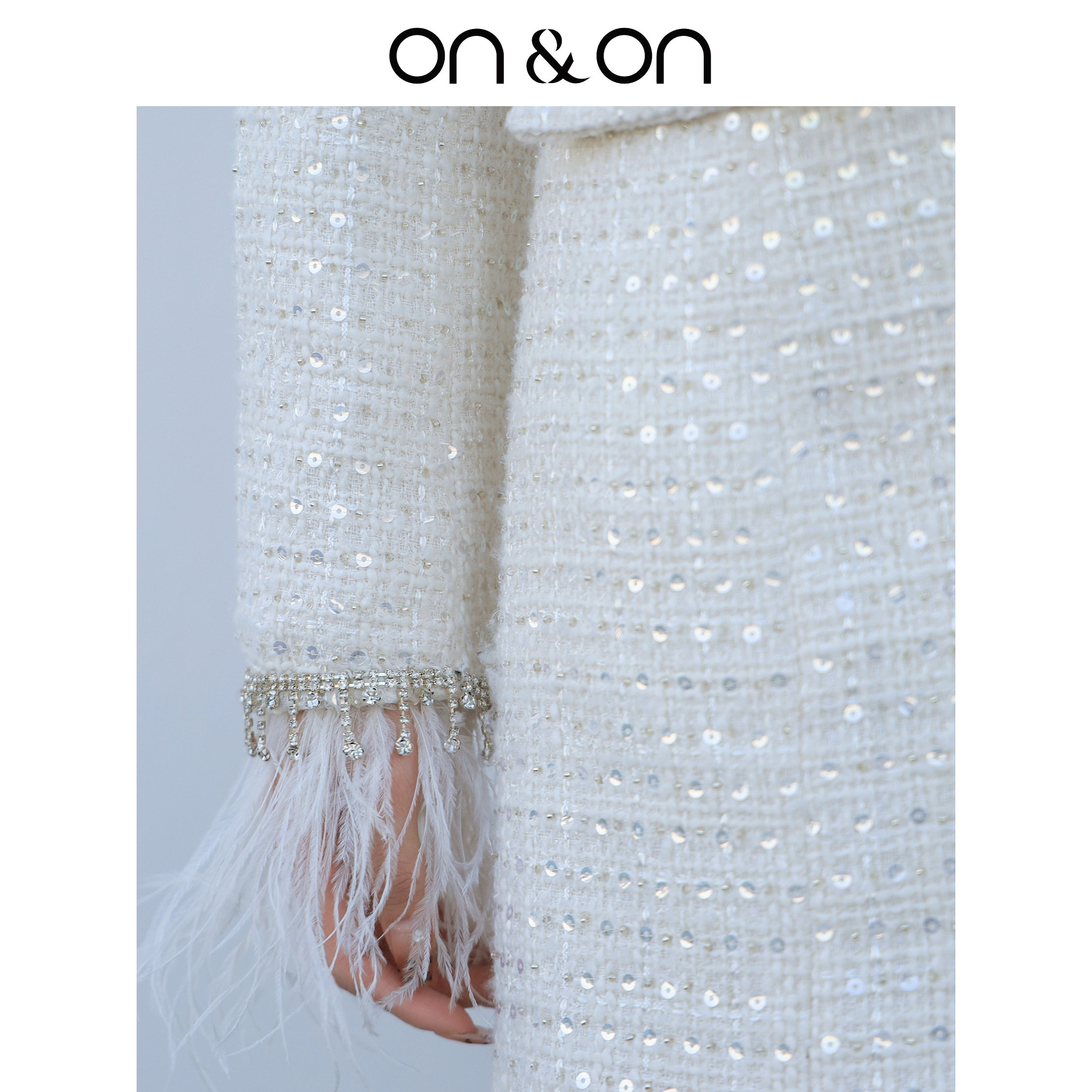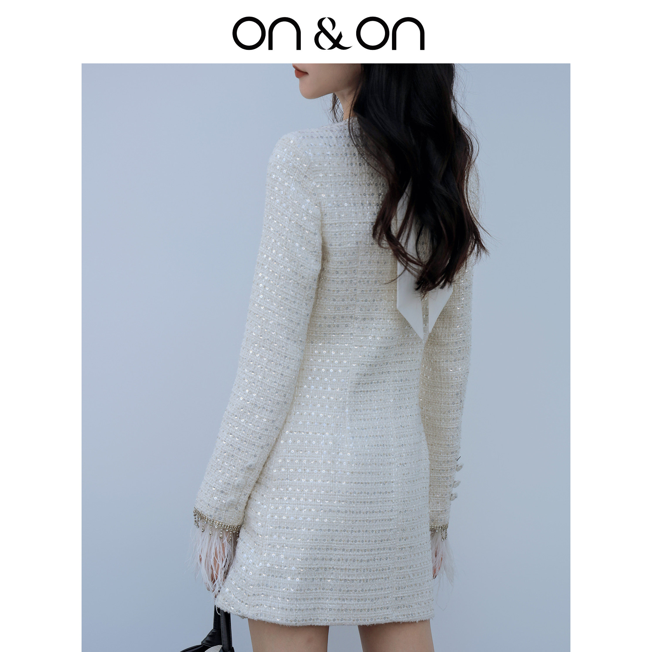 ON&ON/安乃安韩系优雅轻奢风金属亮片粗花呢修身显瘦中长款外套