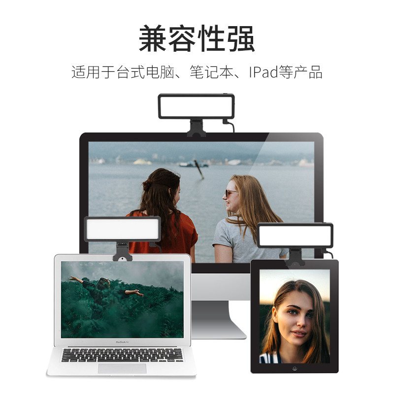视频会议补光灯迷你led电脑笔记本夹子柔光灯在线教学网课抖音直播会议屏幕拍摄拍照口袋补光灯便携小巧美颜