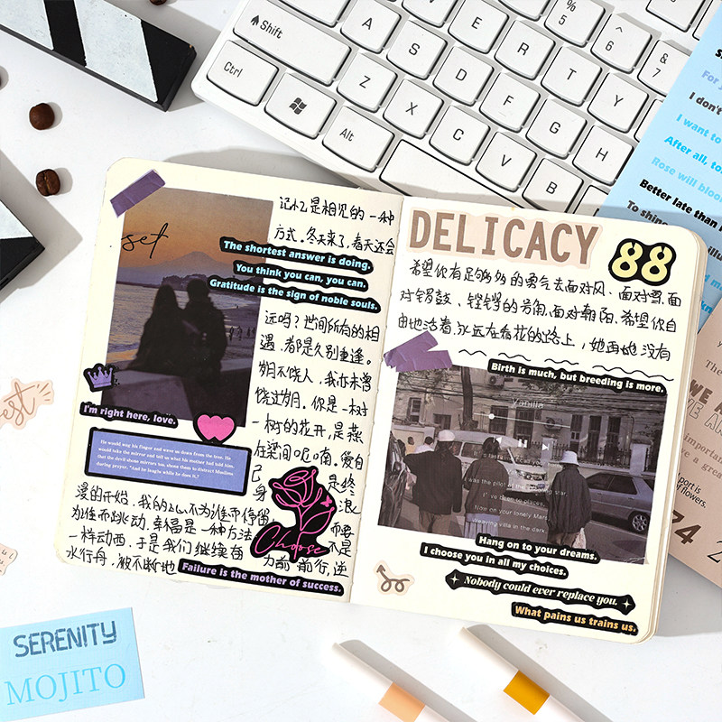 字迹心声复古长条英文简约贴纸造景手帐diy礼物趣味装饰打底ins风