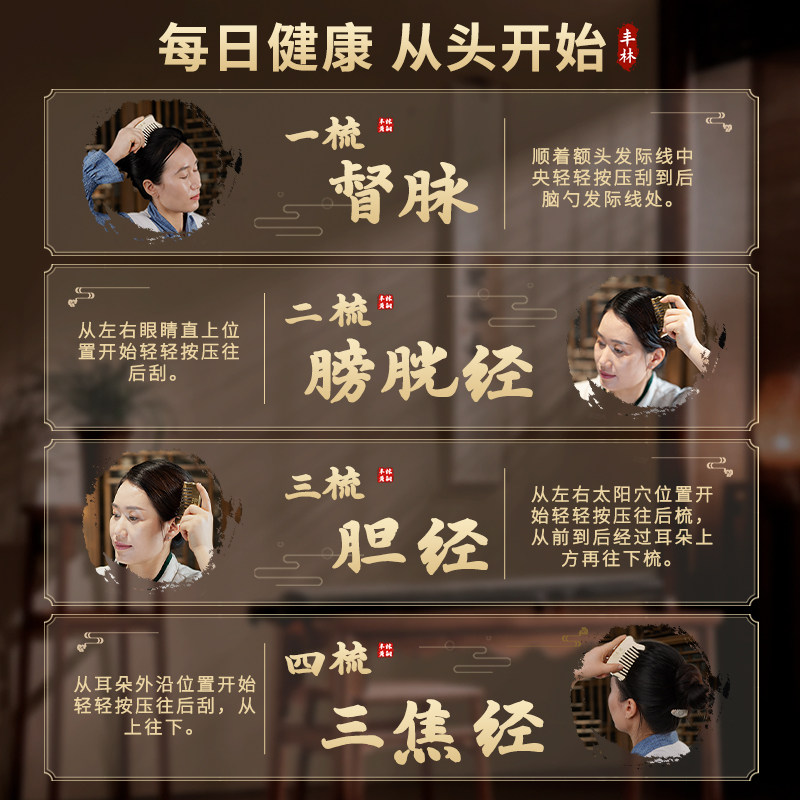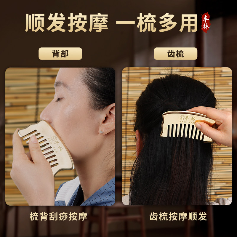丰林铜刮痧板铜板正品纯黄铜家用头部头皮通用按摩梳乳腺刮痧梳子