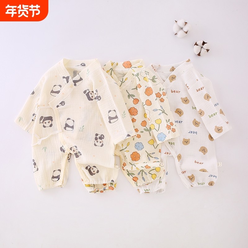 宝宝衣服婴儿四季长袖连体衣春夏薄款新生儿双层纱布纯棉哈衣一件