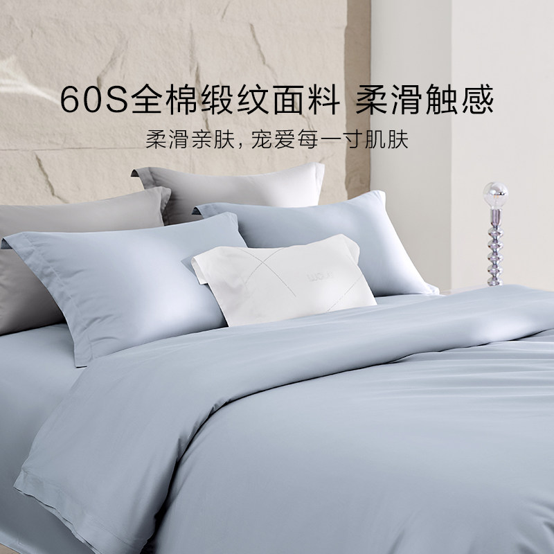 罗莱家纺套件60支贡缎纯棉全棉超柔被套床单四件套四季床上用品