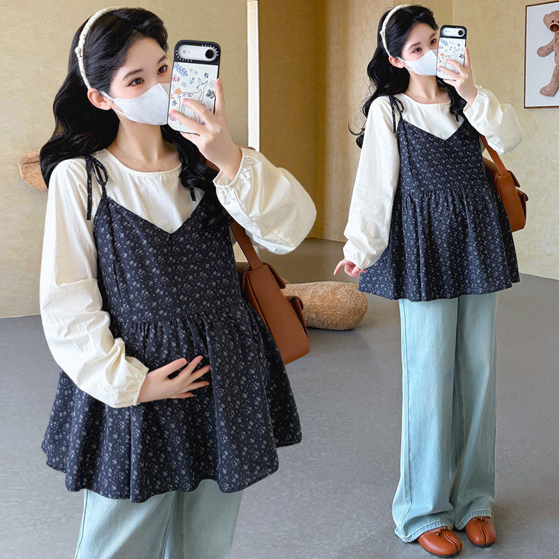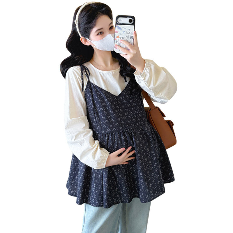 婧麒孕妇衬衫春装新款长袖宽松甜美洋气遮孕肚上衣春秋季潮妈外出