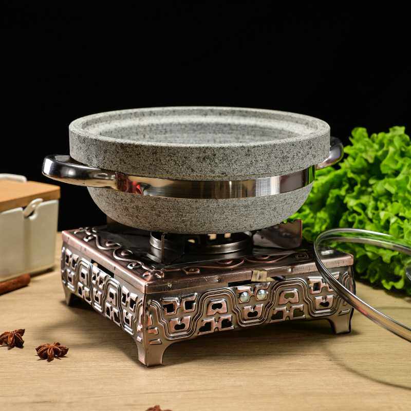 商用酒精锅干锅烹饪用具石头锅炉子石锅浅烤盘石碗酒精炉小火锅