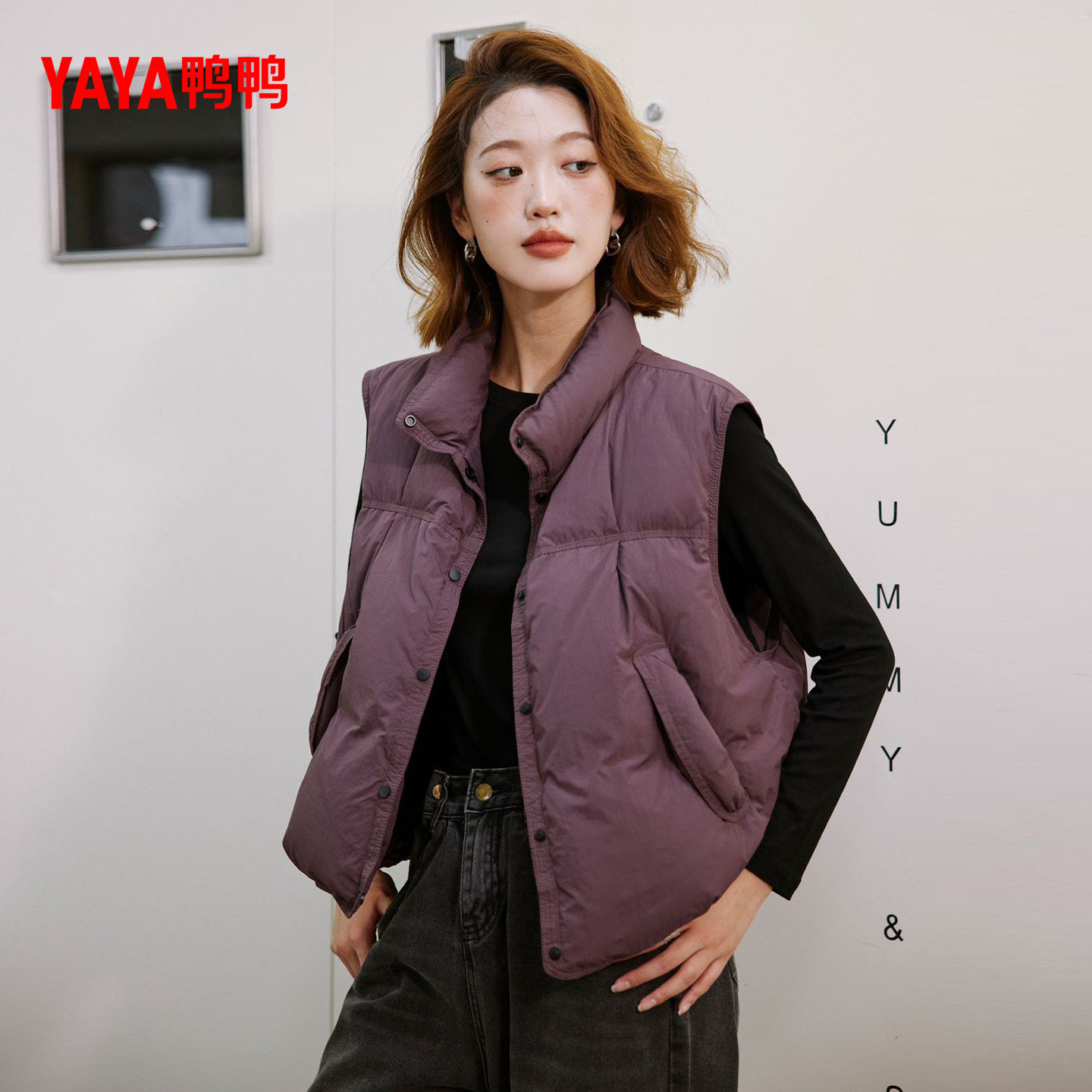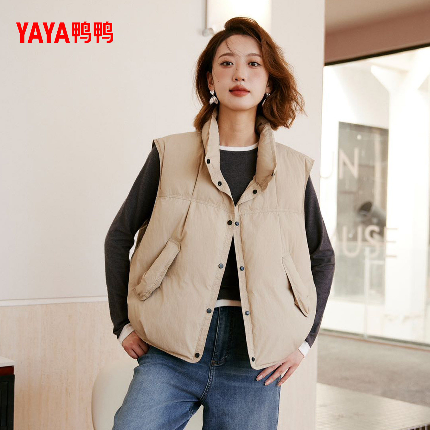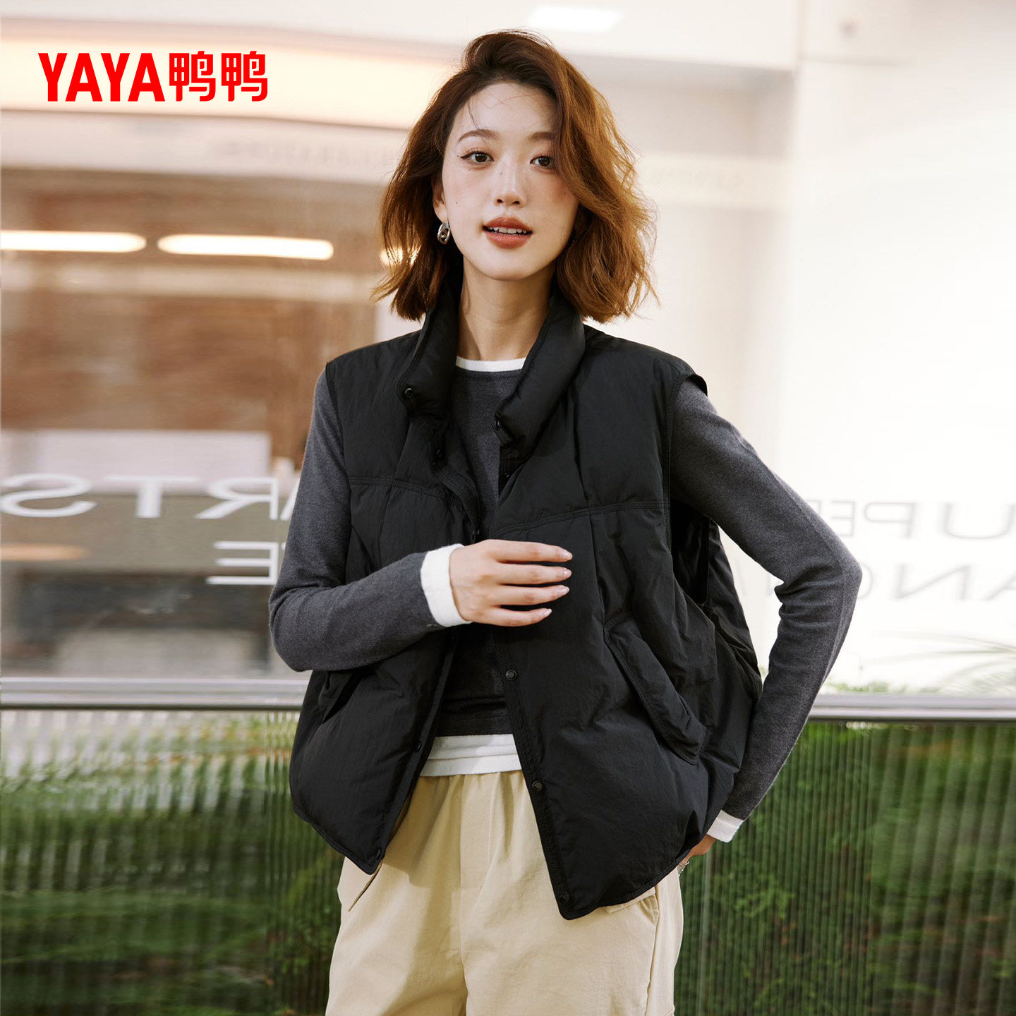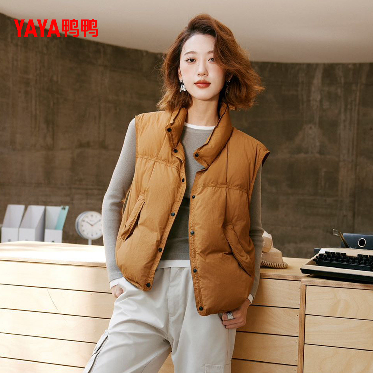 鸭鸭羽绒服马甲女士2025秋冬短款立领休闲舒适宽松鸭绒上衣外套J